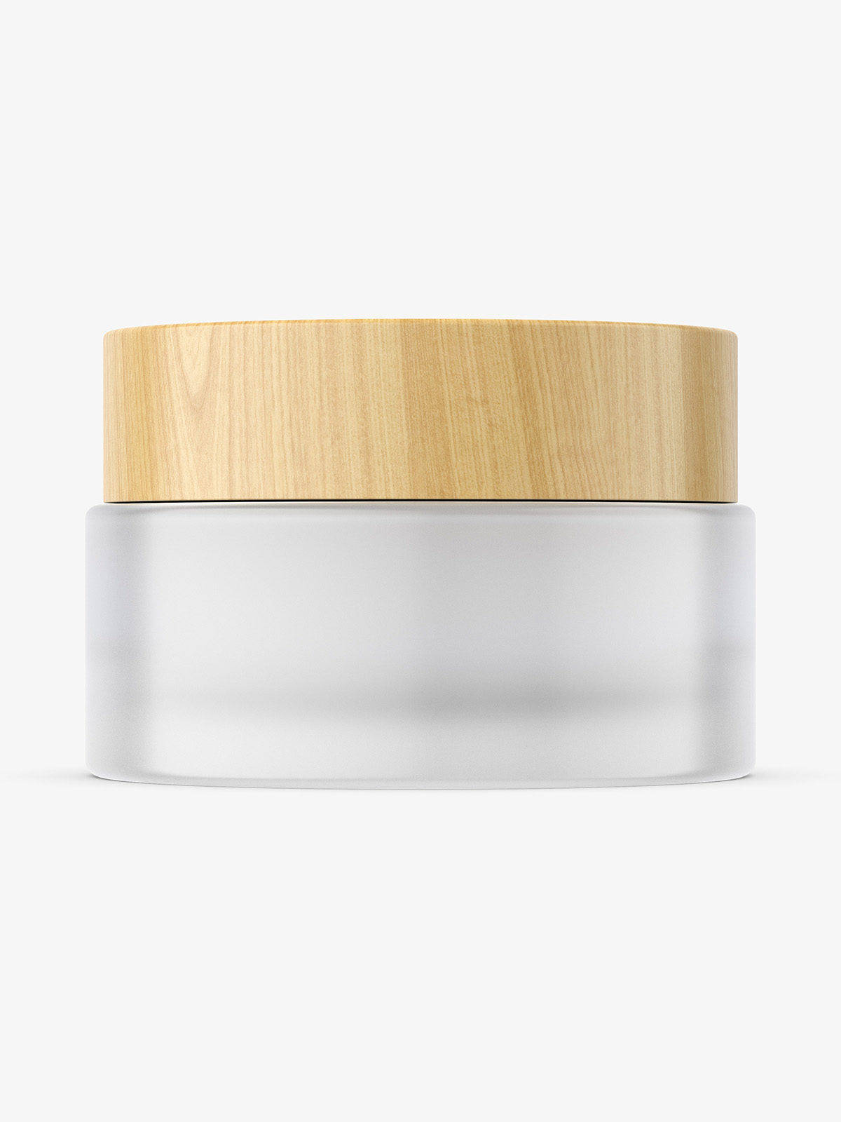 Frosted jar with wooden cap mockup. Prepared in high resolution with ability to paste your own project. You can control highlight strength.