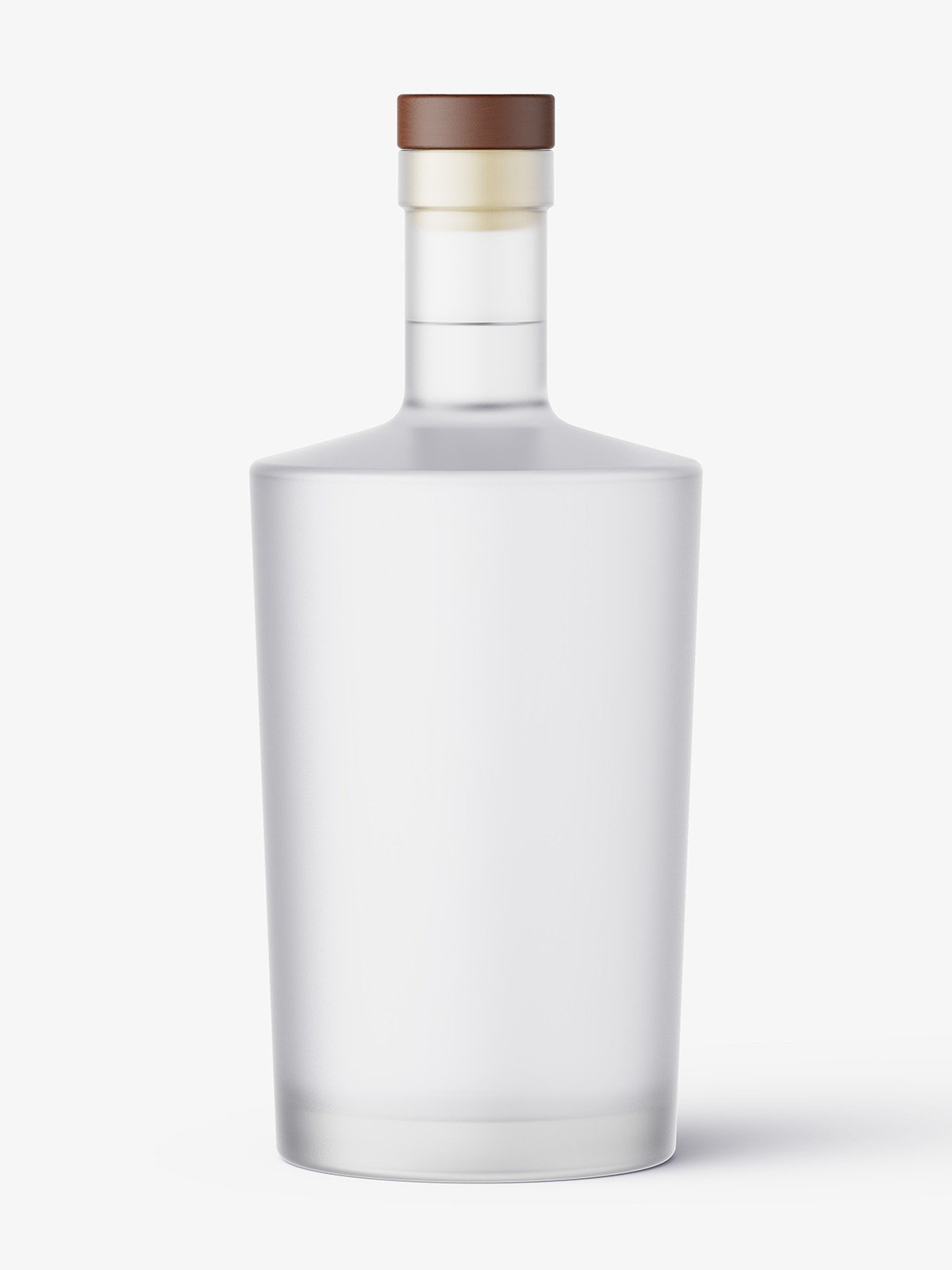 Universal frosted vodka bottle with transparent liquid inside. Such mockup may be use as vodka packaging packshot or other alcohol drinks as well.