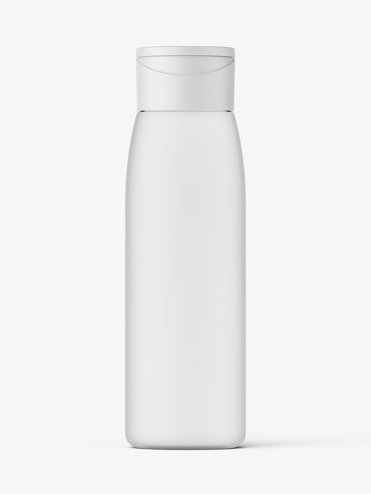 Easy to use wide cosmetic bottle with flip top lid mockup. Thanks to the fact that you can adjust every element of the bottle to your needs, you can create a beautiful and convincing visualization of your design in just a few moments.