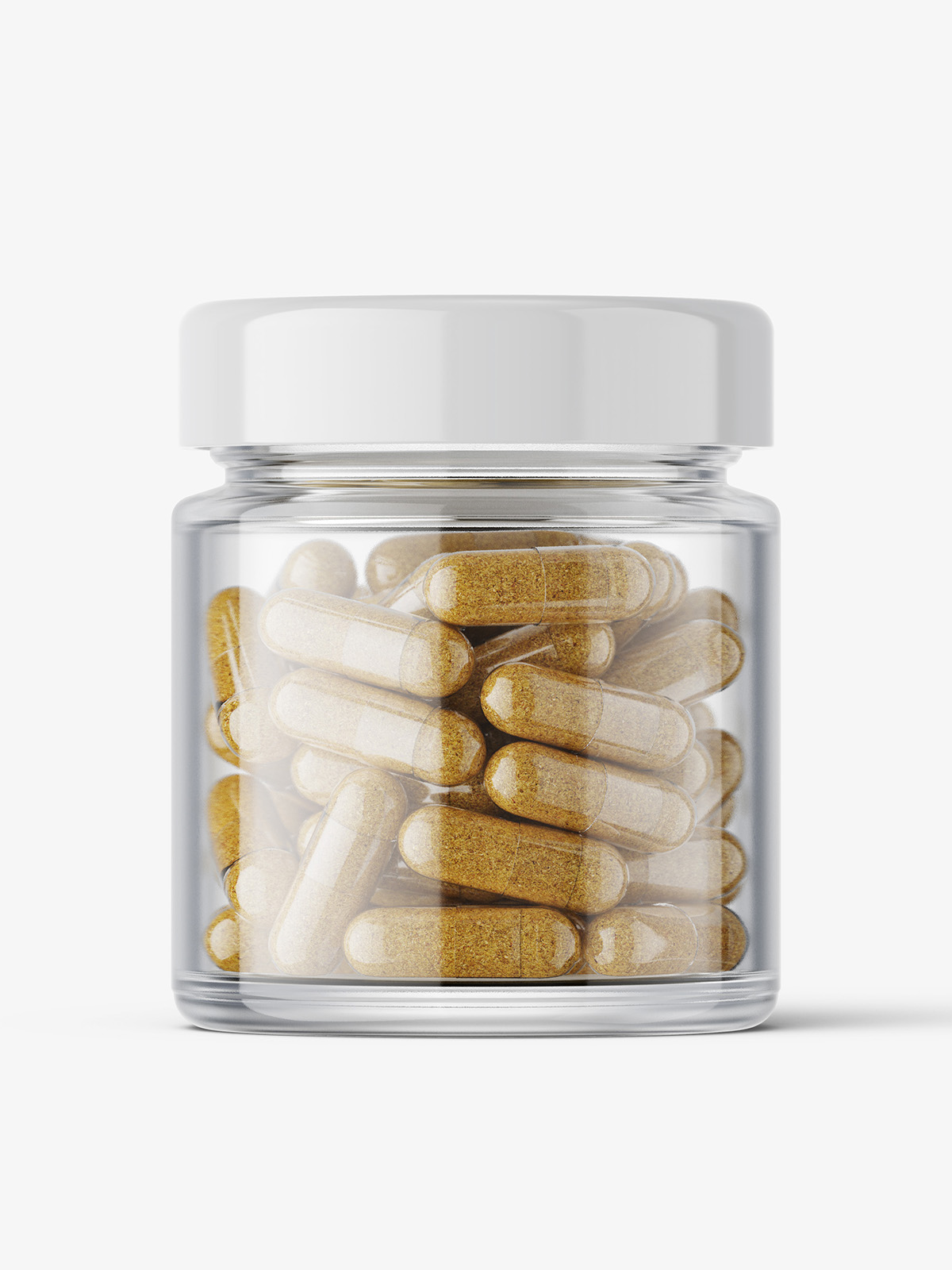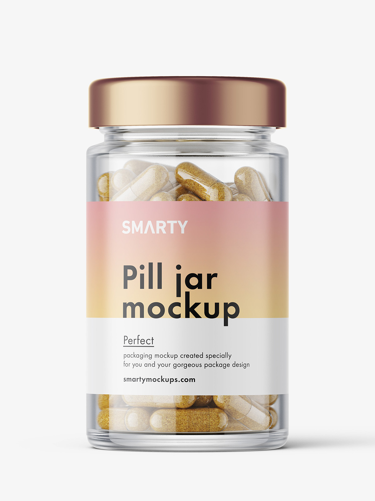 Jar with medicine mockup. It is easy to use and customize. Mockup is preapred in high resolution. You can adjust label size and shape.