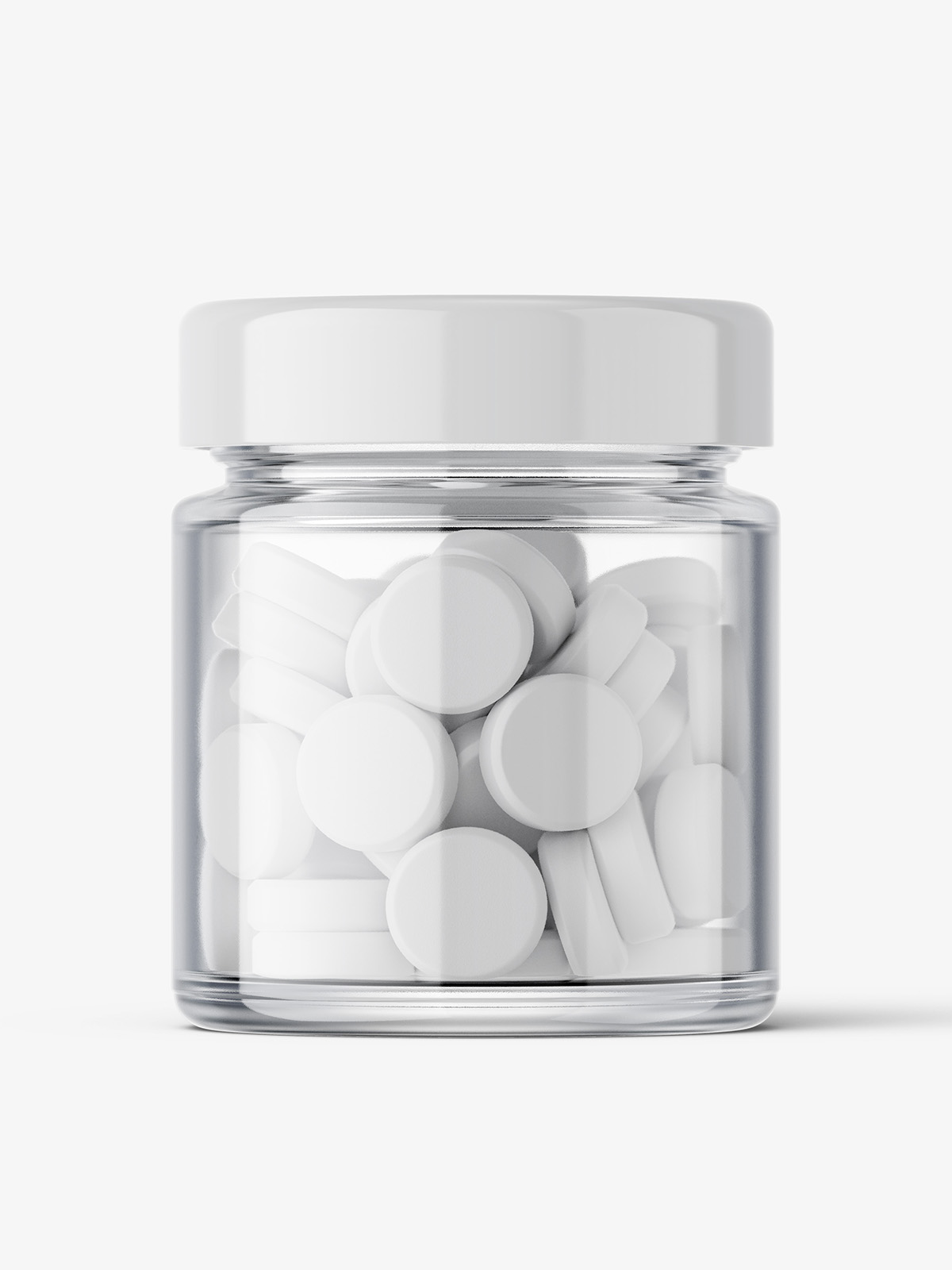 Jar with medicine mockup. It is easy to use and customize. Mockup is preapred in high resolution. You can adjust label size and shape.