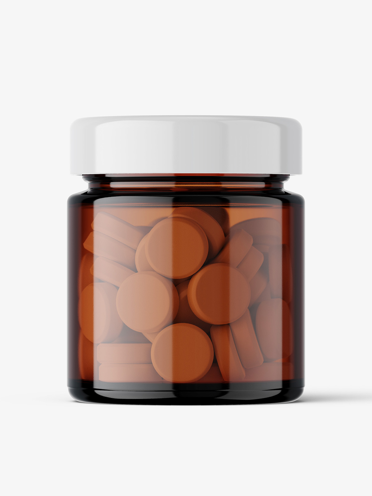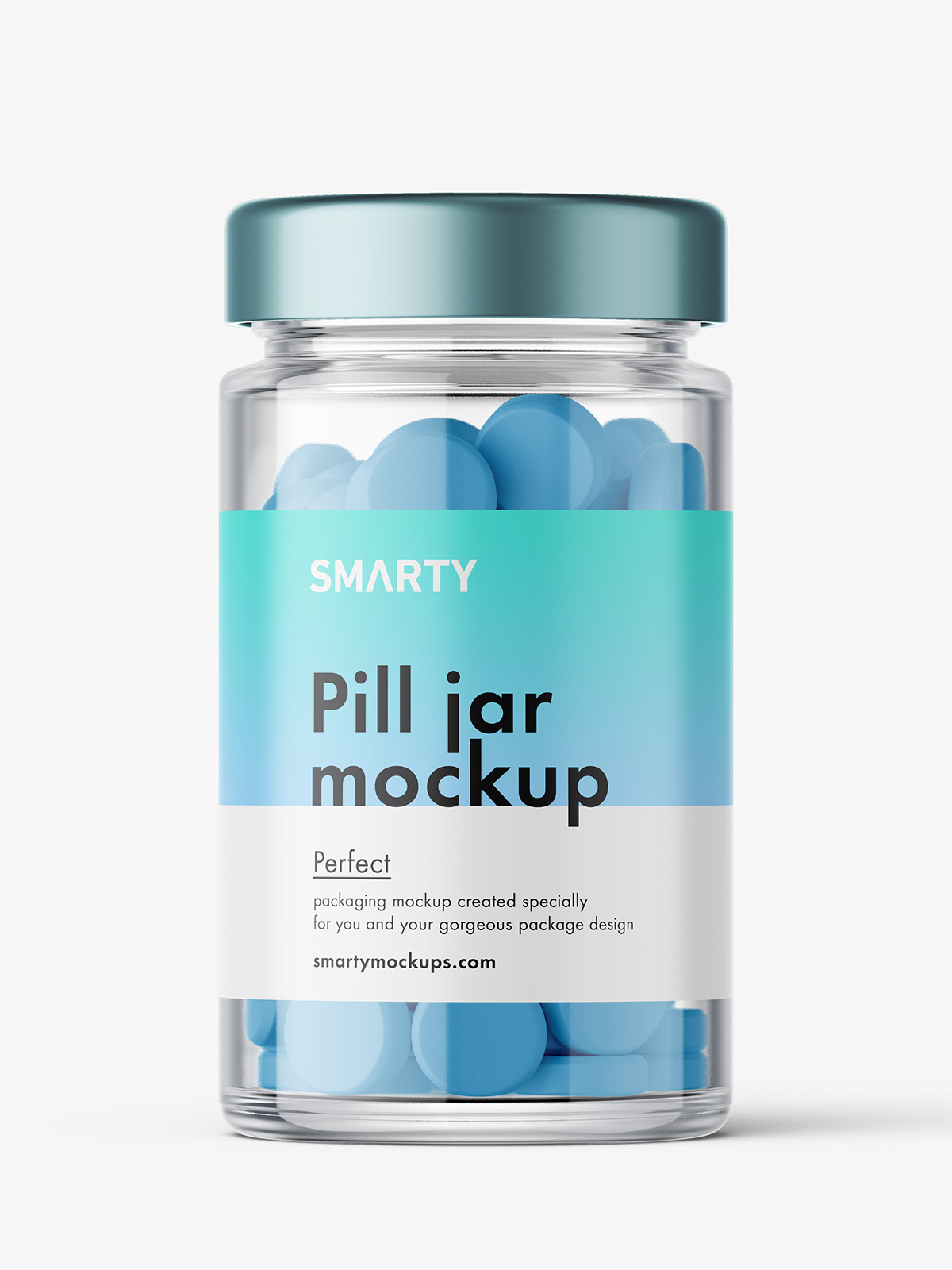 Jar with medicine mockup. It is easy to use and customize. Mockup is preapred in high resolution. You can adjust label size and shape.
