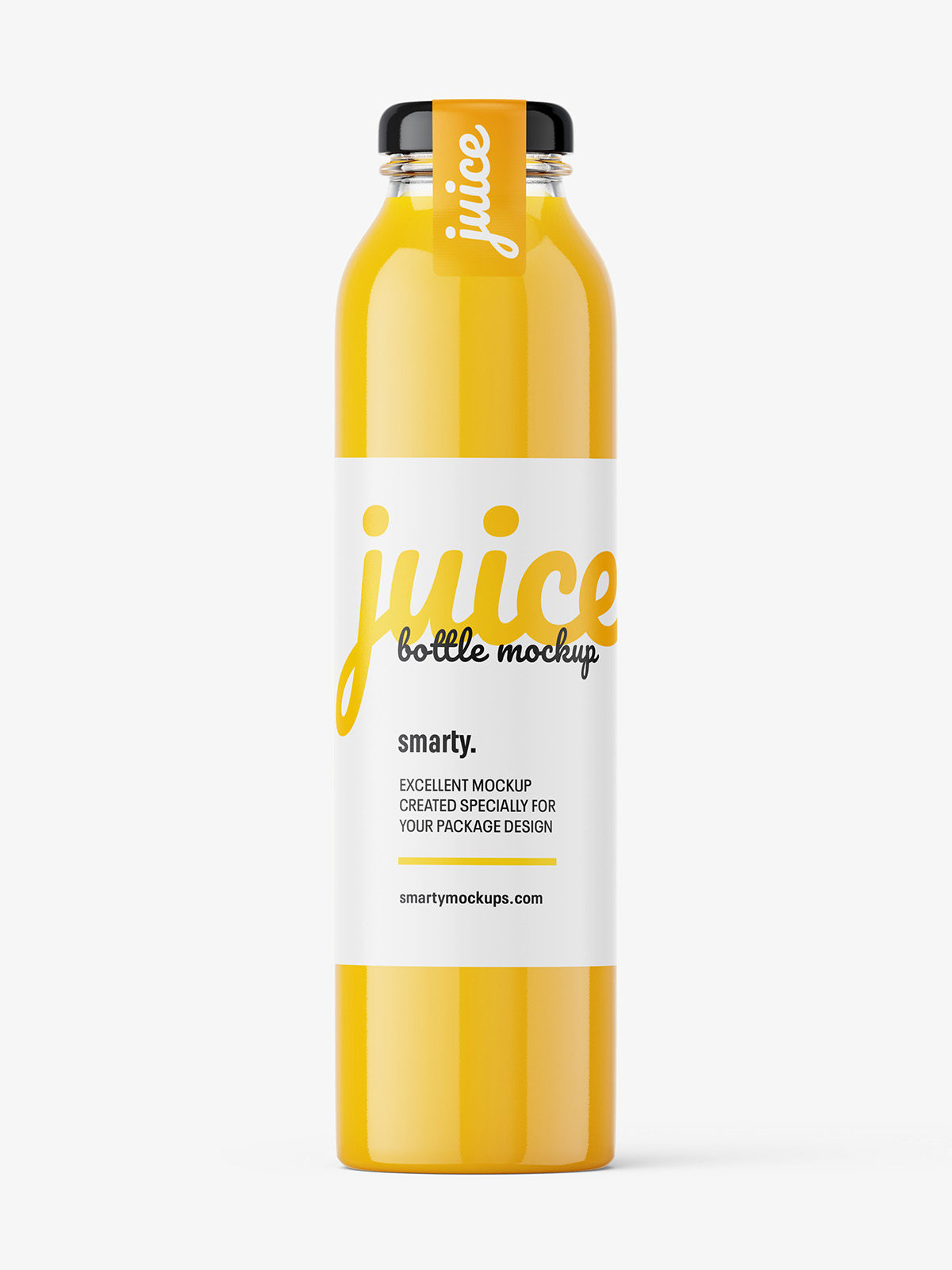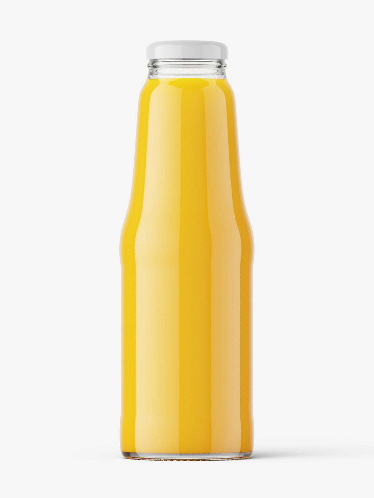 Glass bottle used as a package for juices and other colorful drinks. Mockup is prepared with an option for an easy change of the cap color.