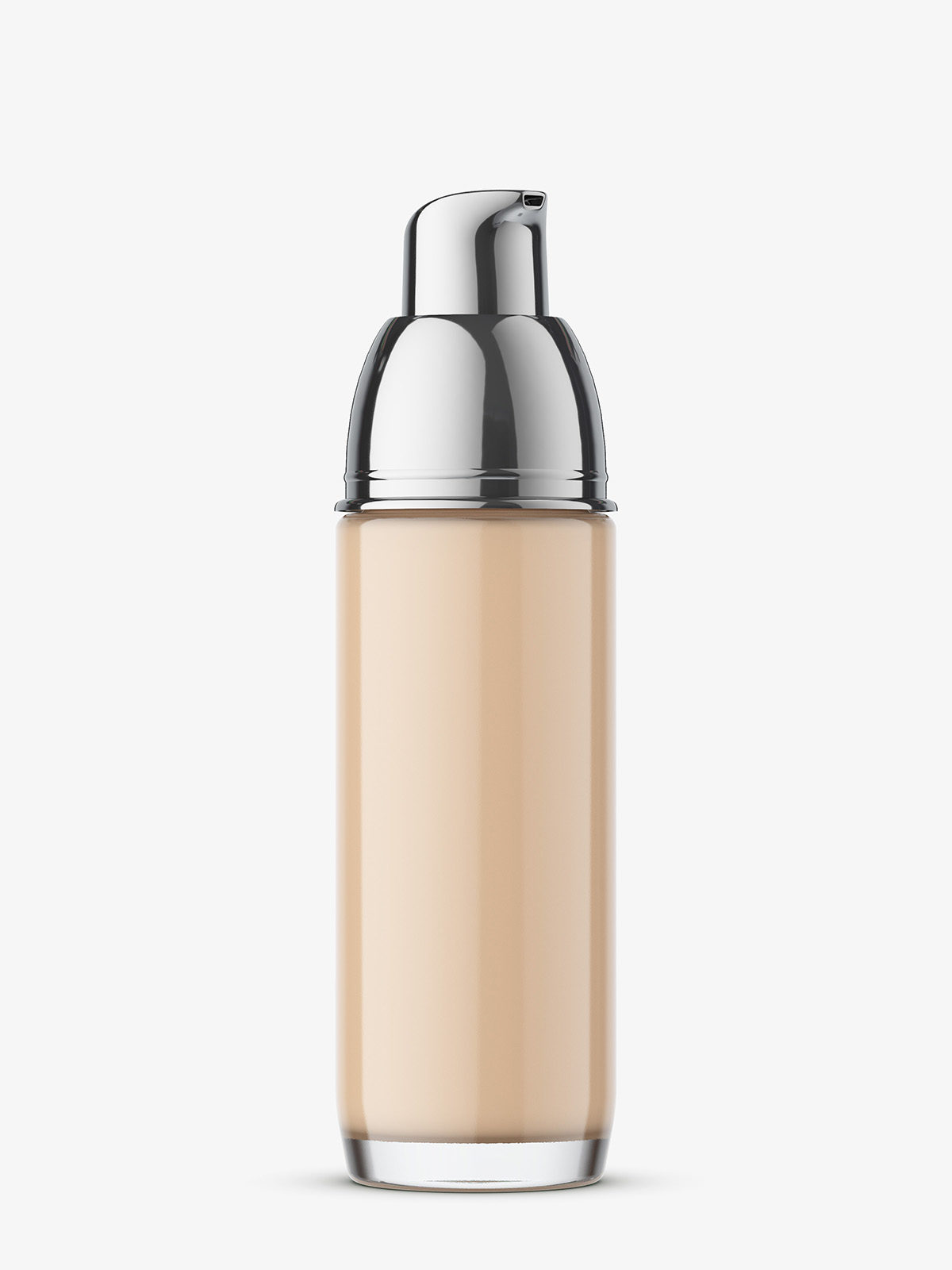 Glass matt foundation bottle mockup prepared in high resolution. Project has two coatings: regular paper and metallic varnish. Shadows are on separate layer.