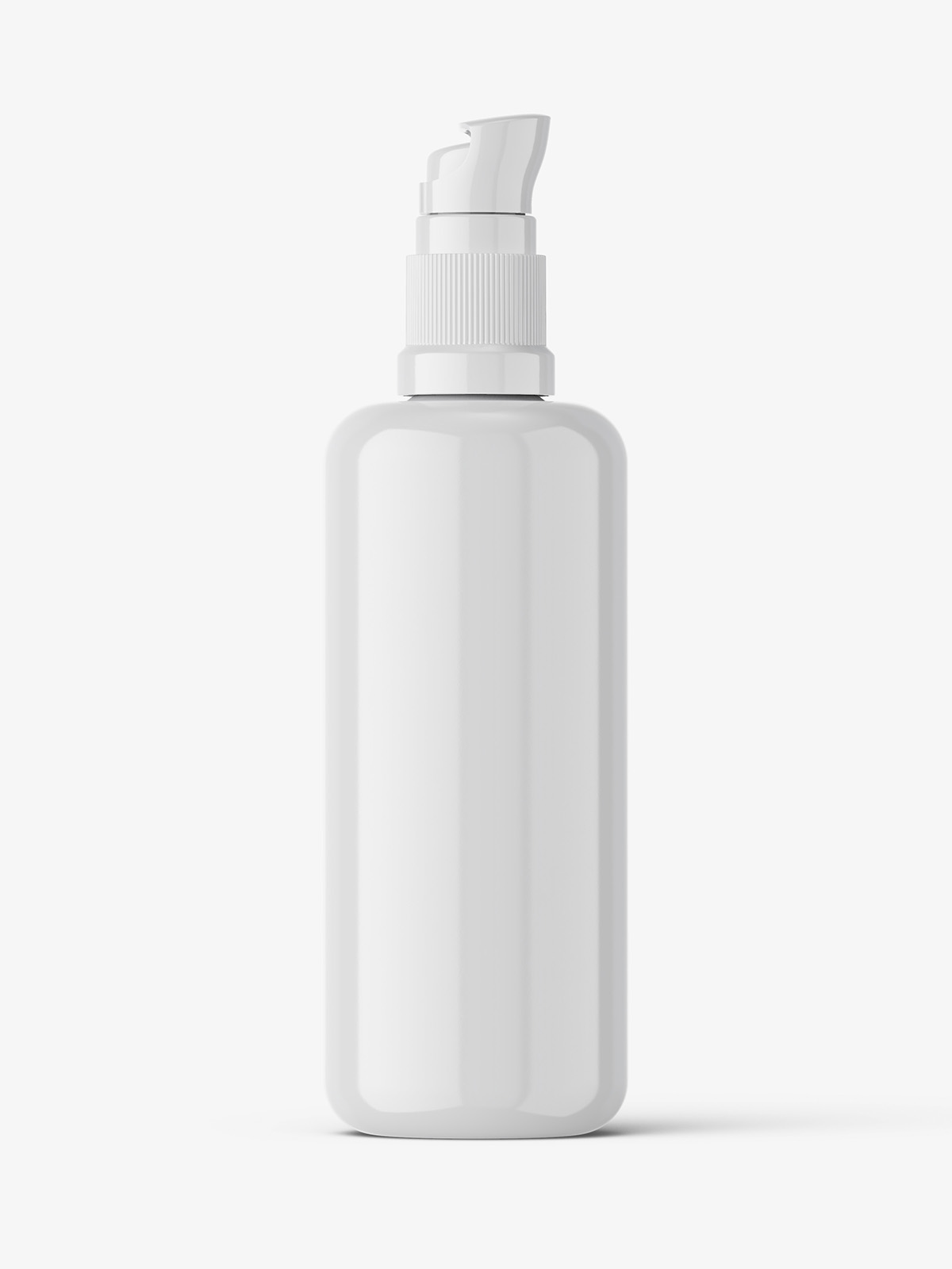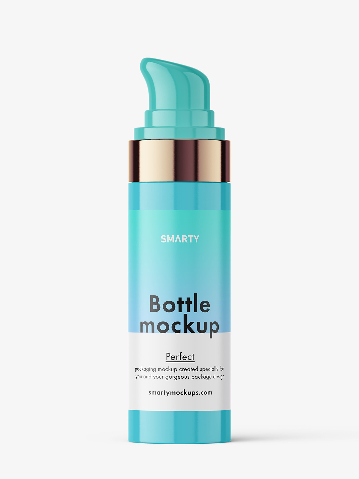 Cosmetic bottle with airless pump mockup. Prepared with ability to paste your own project and set cap color.
