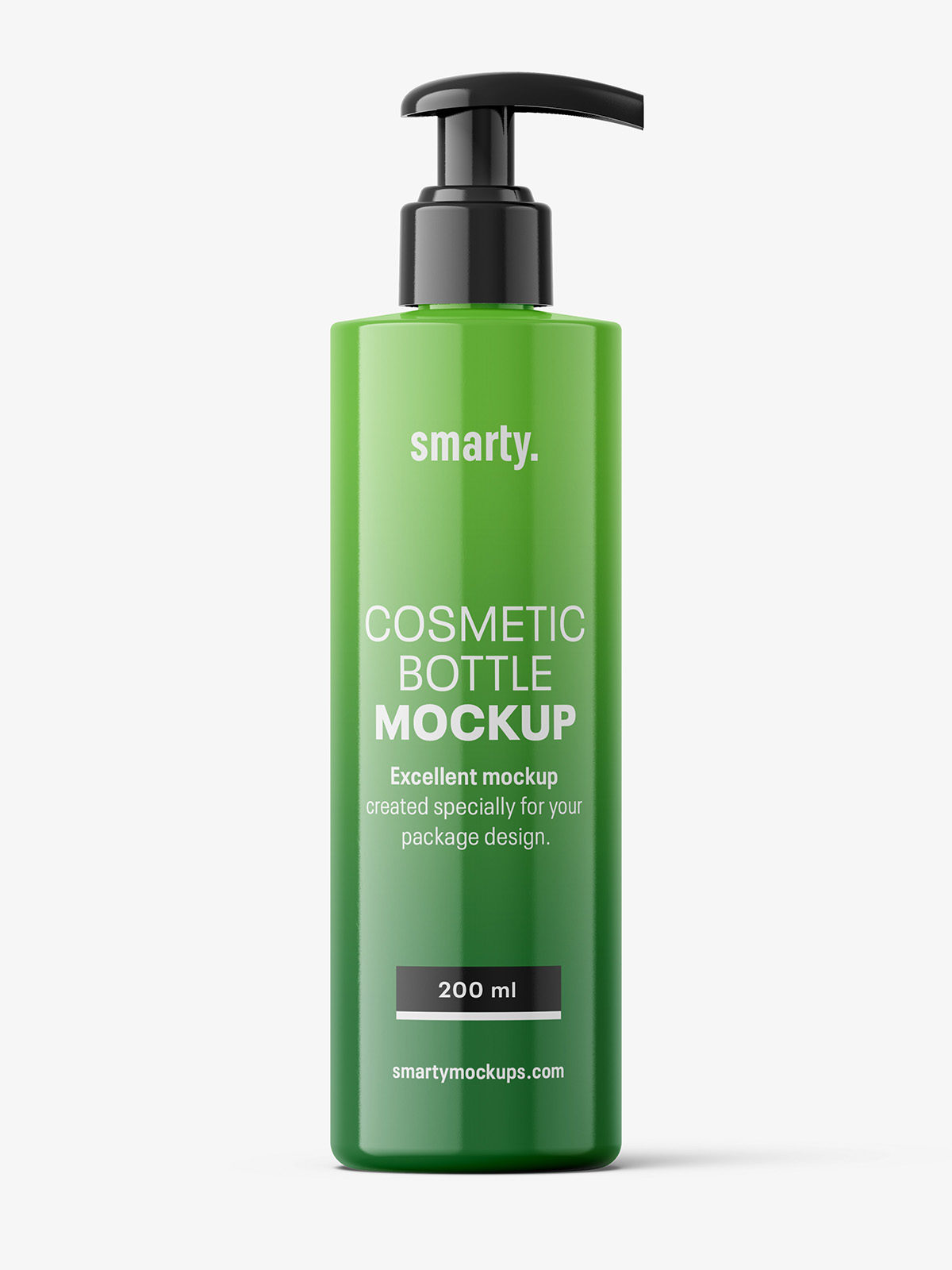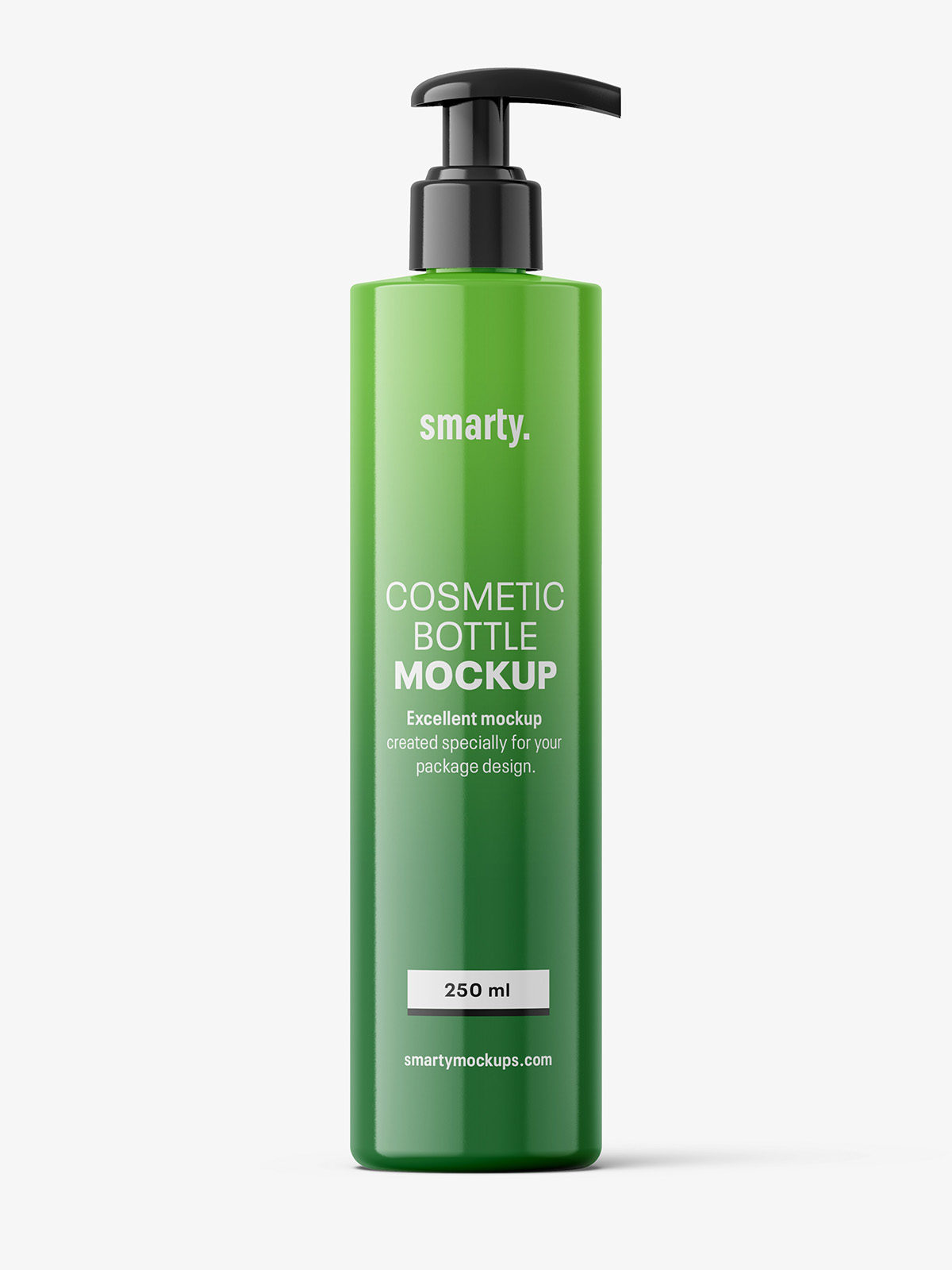 Cosmetic bottle with pump mockup prepared in high resolution. Label covers entire bottle and cap color can be changed.