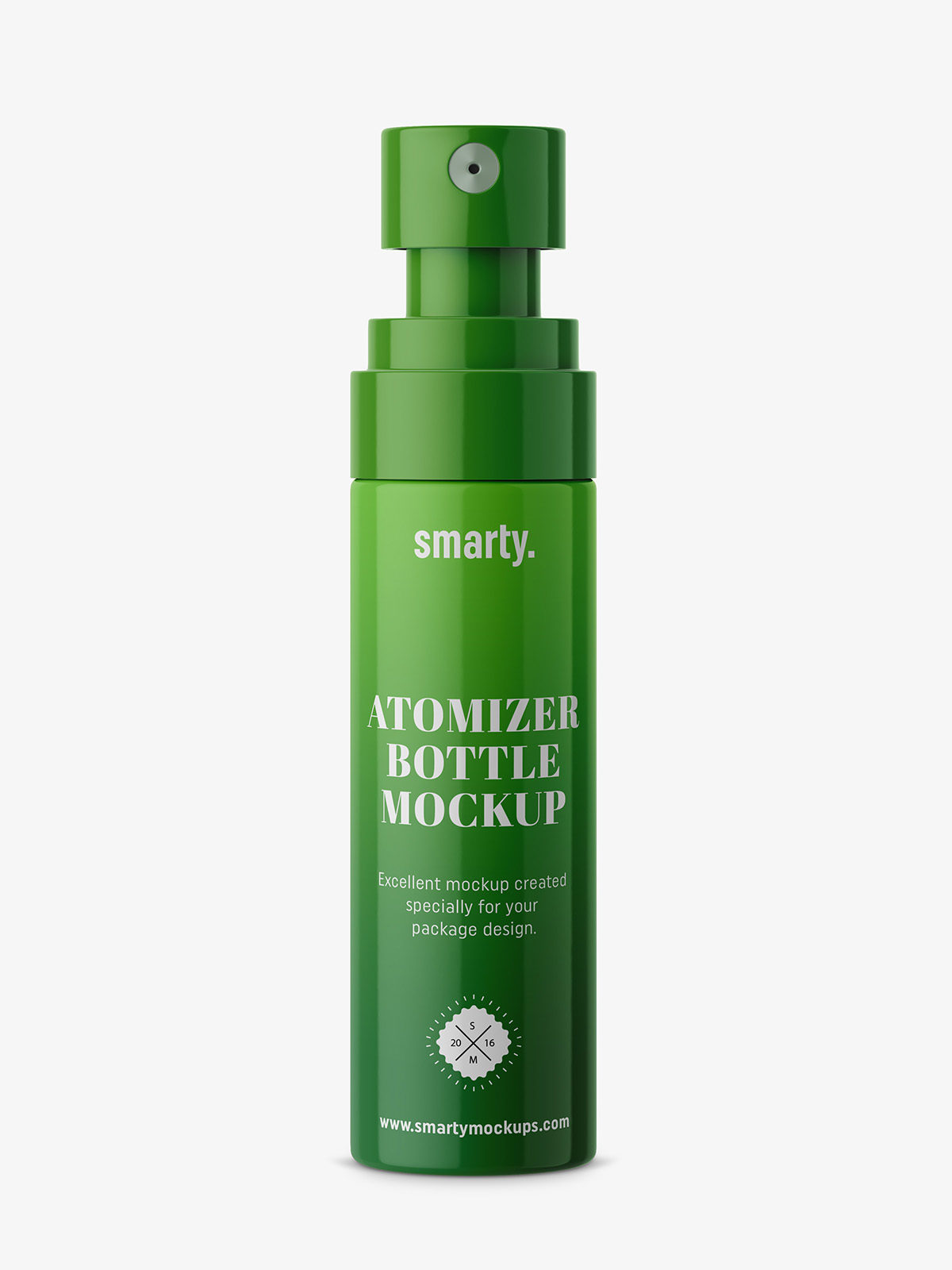 Glossy bottle with transparent disc top cap mockup
