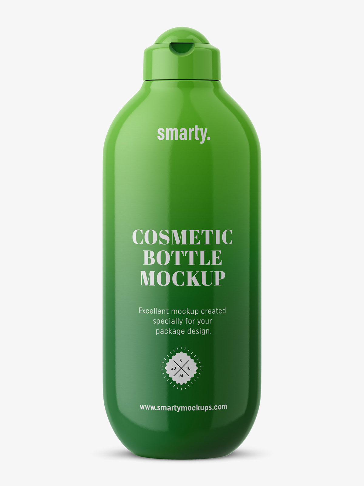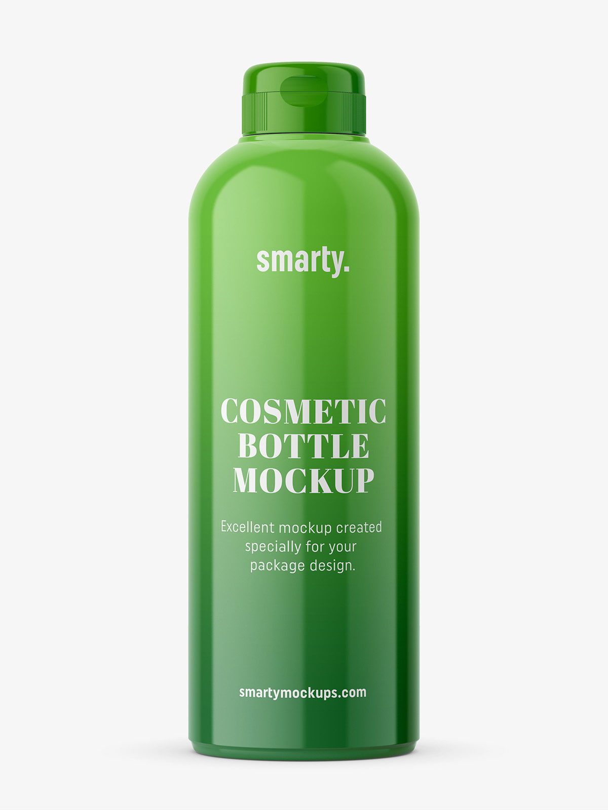 Glossy cosmetic bottle mockup. Such bottle type may be used in cosmetic, hair or even pharmacy industry. Prepared in high resolution.