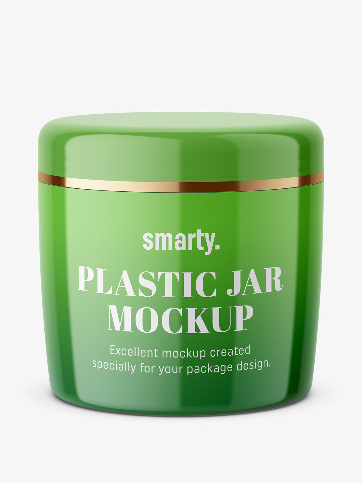 Glossy cosmetic jar with metallic cap mockup. You can paste your project in no-time and set color of the jar and the cap.