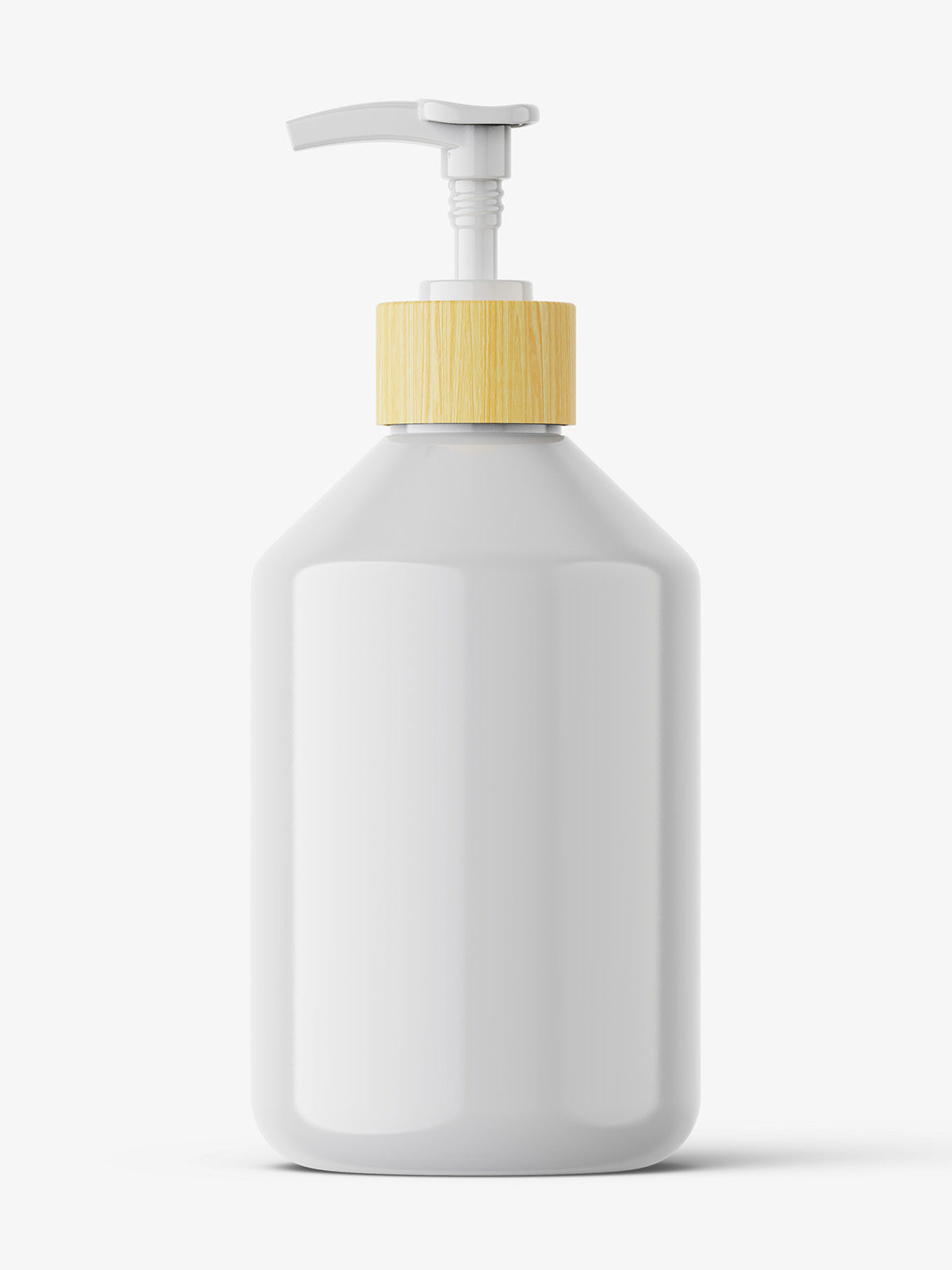 Glossy cosmetic jar with wooden ring and glossy pump. Bottle and pump color can be changed. Cap texture cannot be changed.