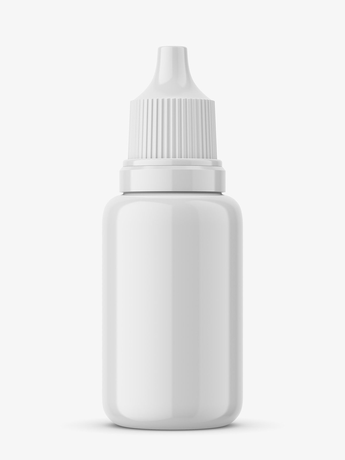 Dropper bottle, used in the pharmaceutical industry as the package for sirups, gels or other liquids. The mockup was prepared so as to allow for adding any color to the cap.