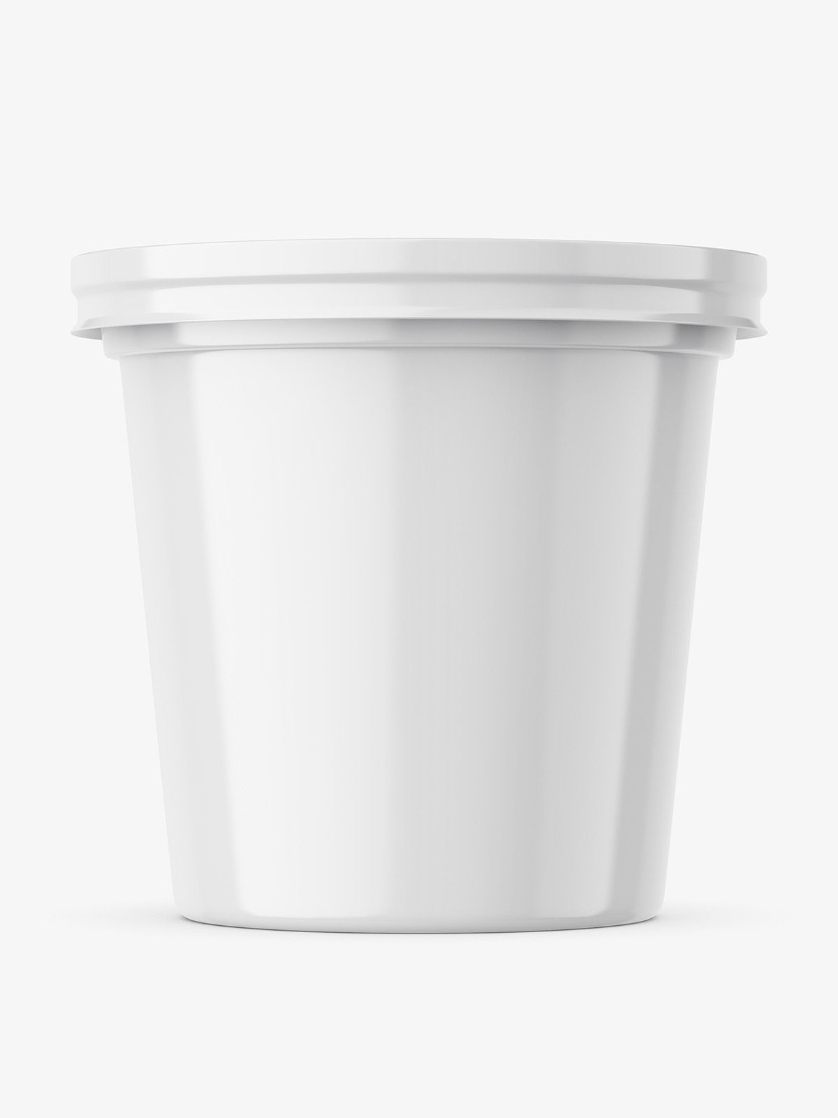 Plastic tub / bucket used as a container for various creams: sour cream, cottage cheese, yoghurt and others. The mockup was prepared for an easy change of packaging color.