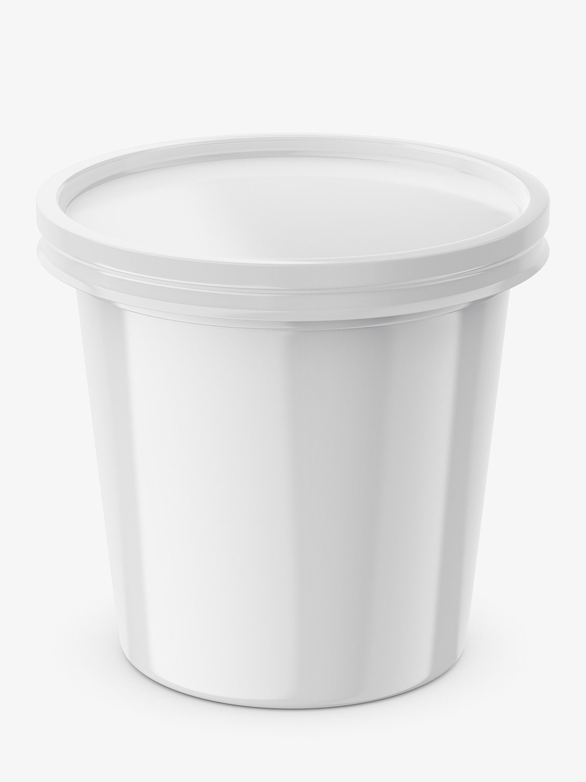 Plastic tub / bucket used as a container for various creams: sour cream, cottage cheese, yoghurt and others. The mockup was prepared for an easy change of packaging color.
