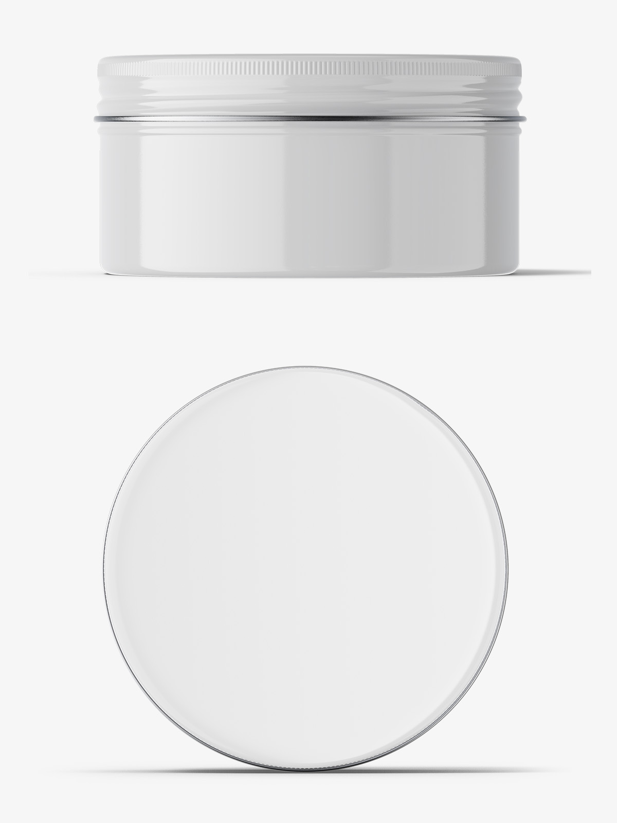 Glossy tin cream jar mockup / top and front view