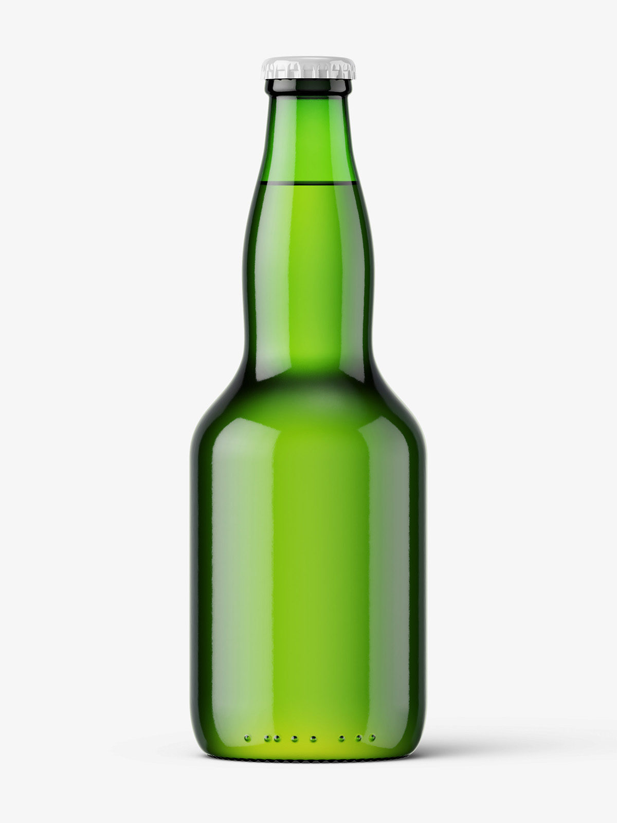 Green beer bottle mockup prepared to edit paper and metallic label. Every element has it’s own light layer that can be customized.