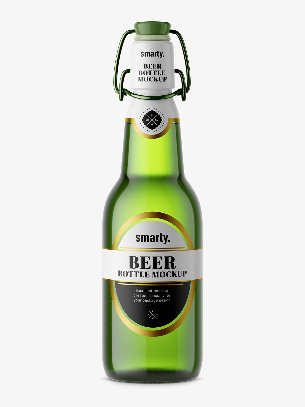 Beer bottle mockup prepared to edit paper and metallic label. Every element has it’s own light layer that can be customized.