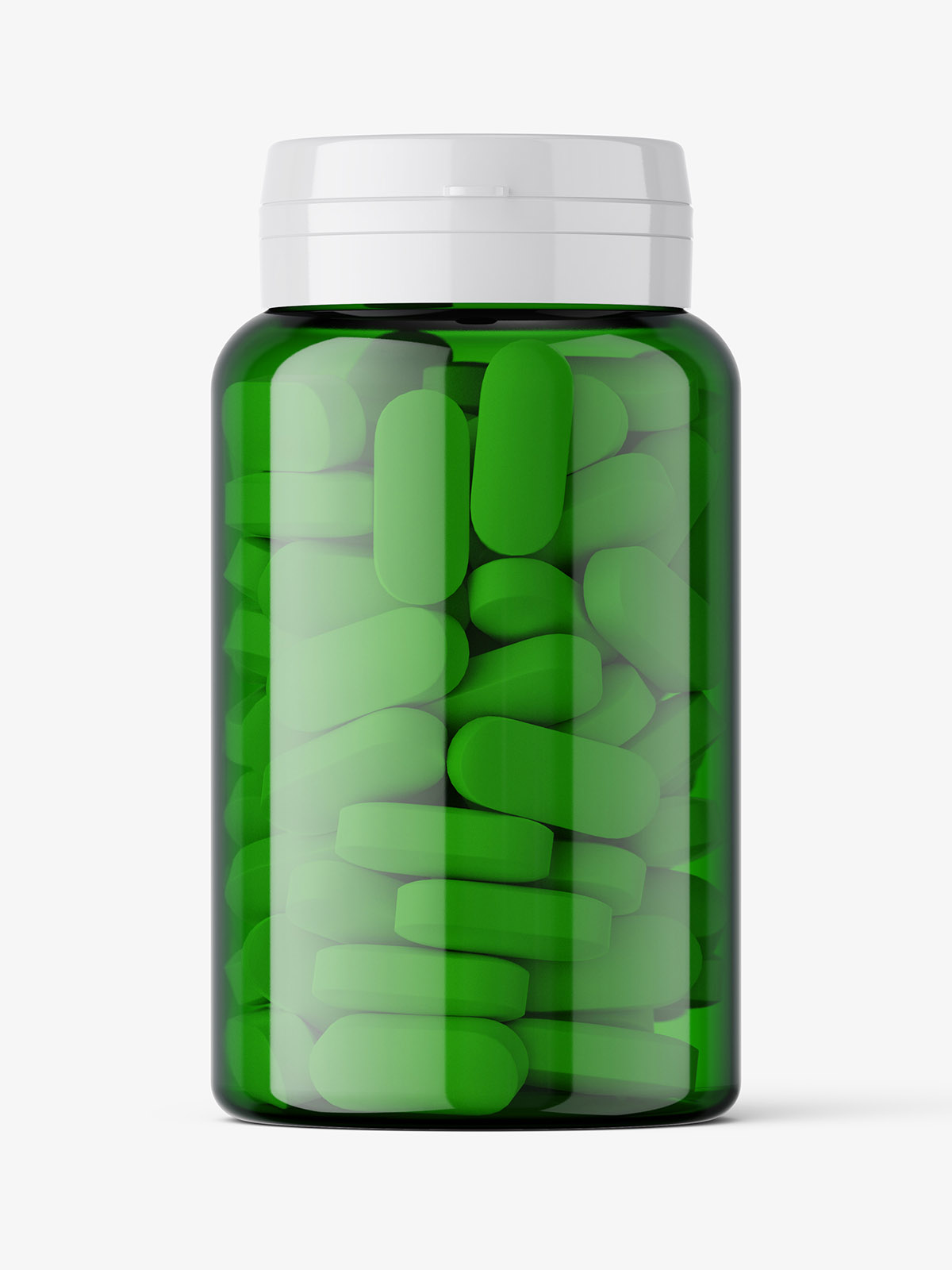 Mockup of a jar with capsules or tablets. The mockup is prepared as a PSD file that can be quickly and easily adapted to your needs. You can paste a label of any shape and size.