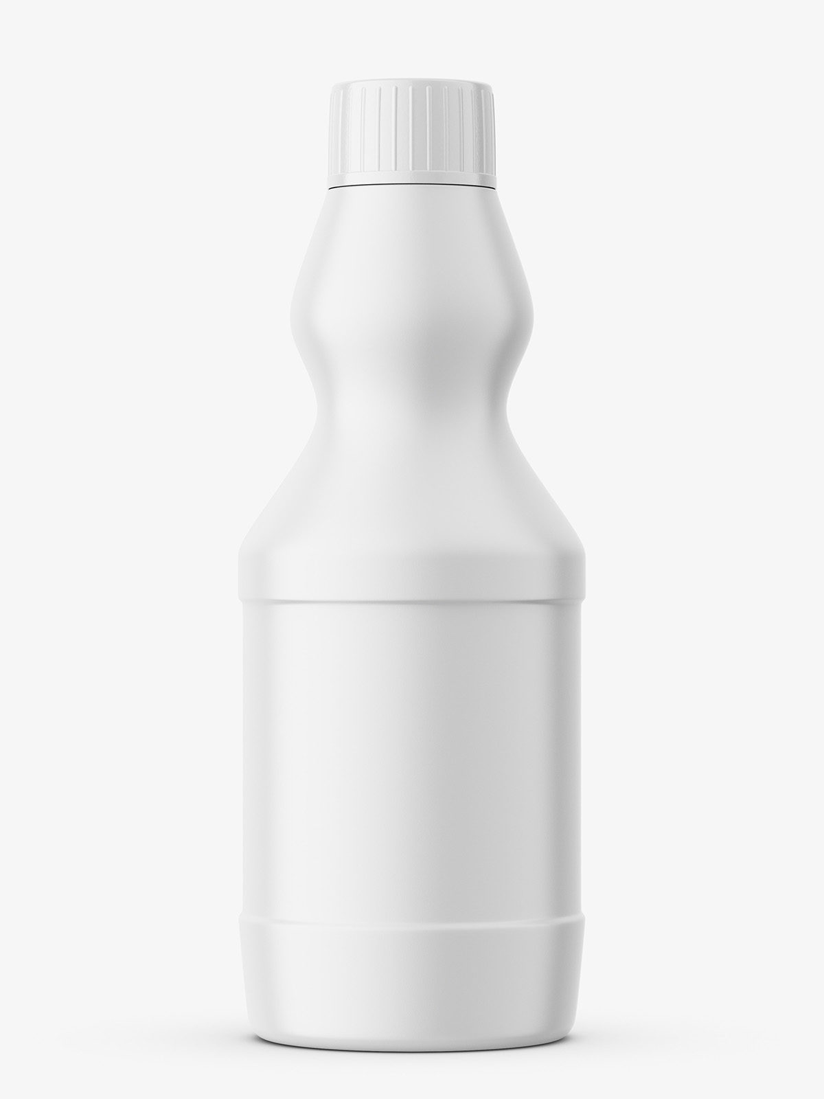 Round household bottle mockup. Such bottle may be used as container for various liquids or even powders.