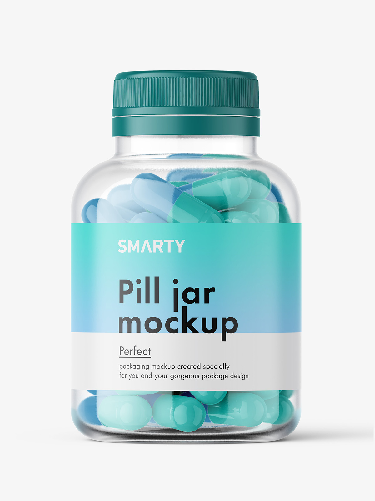 Jar with medicine mockup. Easy to use and customize. Mockup is preapred in high resolution. You can adjust label size and shape.