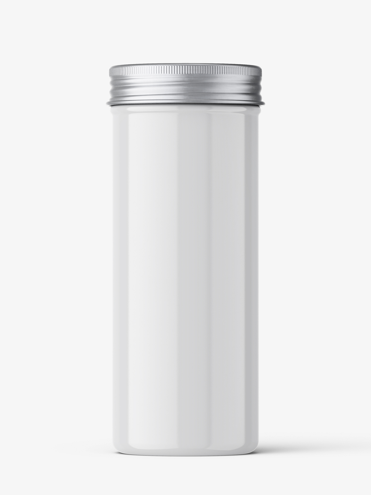 Jar with metallic cap  prepared in high resolution PSD file. Project can be pasted on two coatings: on packaging and on paper label.