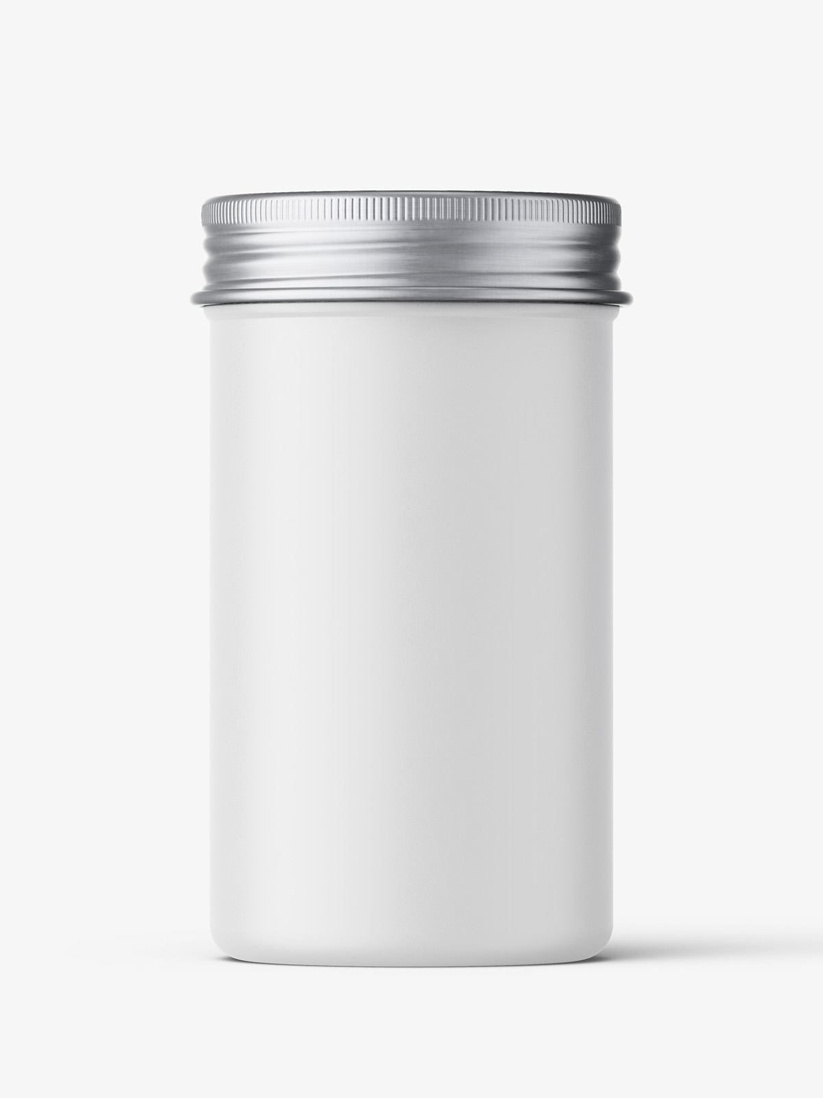 Jar with metallic cap  prepared in high resolution PSD file. Project can be pasted on two coatings: on packaging and on paper label.