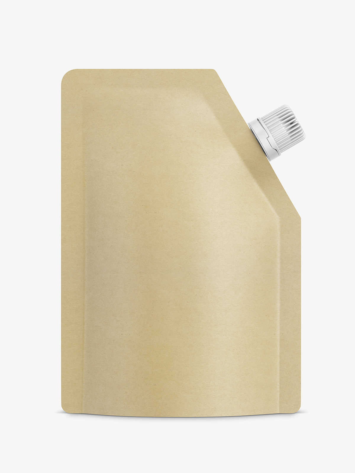 Popular food pouch mockup with diagonal cut for plastic cap. Prepared in high resolution, with ability to modify and customize to your needs.
