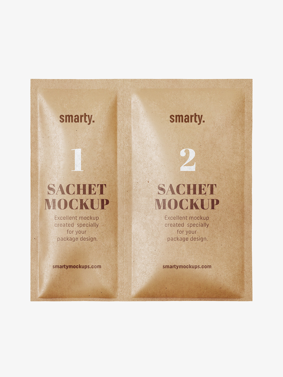 Universal sachet mockup. Mockup is properly prepared so it is super easy to paste your own project and customize it.