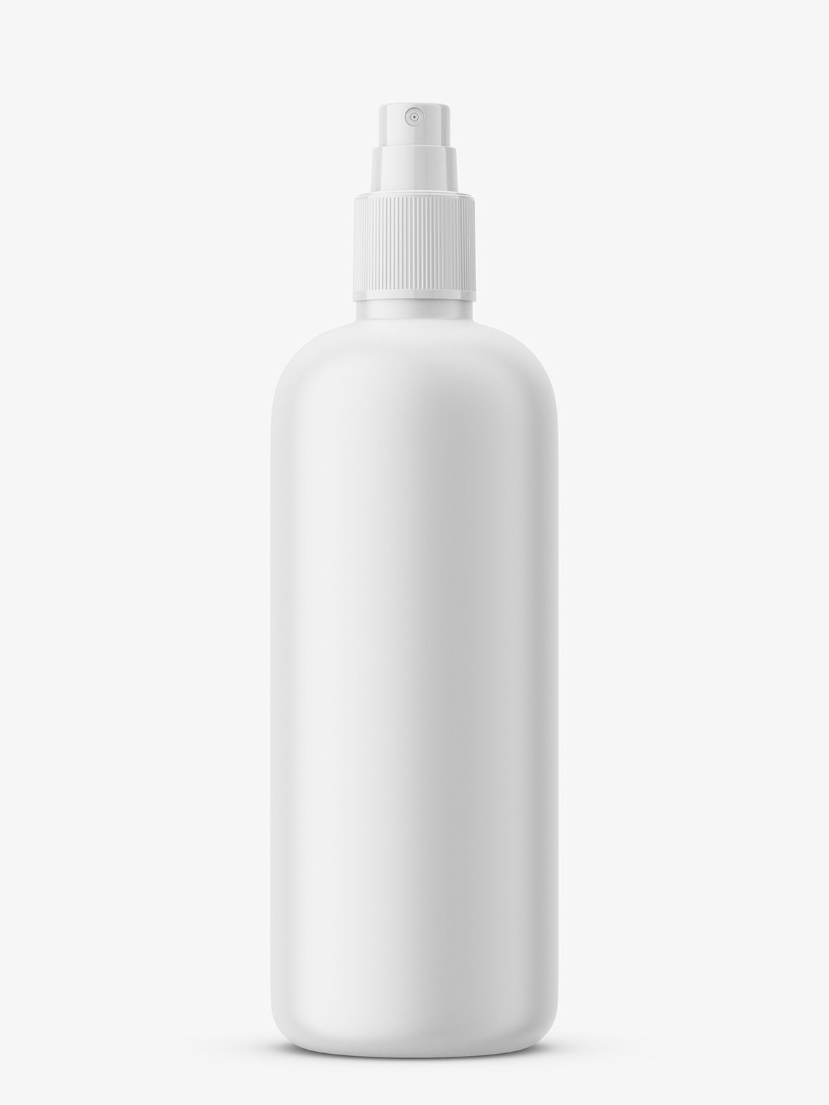 Universal cosmetic bottle with atomizer. Most commonly used in beauty industry as a package for mists, fragrances, conditioners and other beauty products. May be used as pharmacy packaging as well.