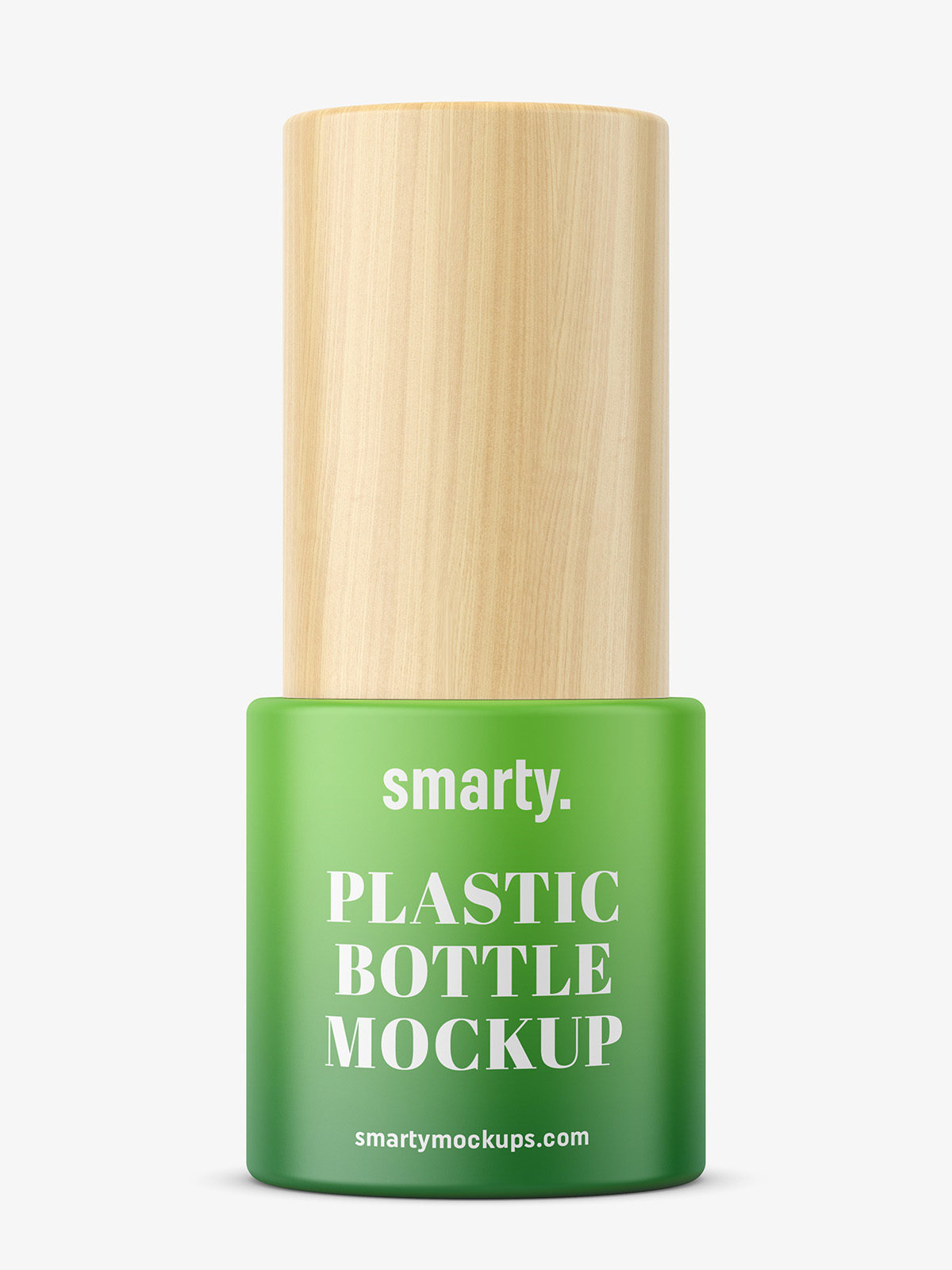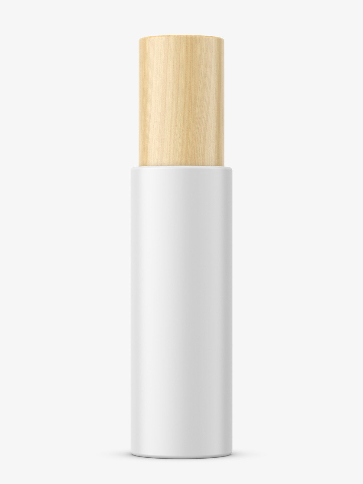 Straight matt bottle with wooden cap mockup. Prepared with ability to change bottle project. Cap texture cannot be changed.