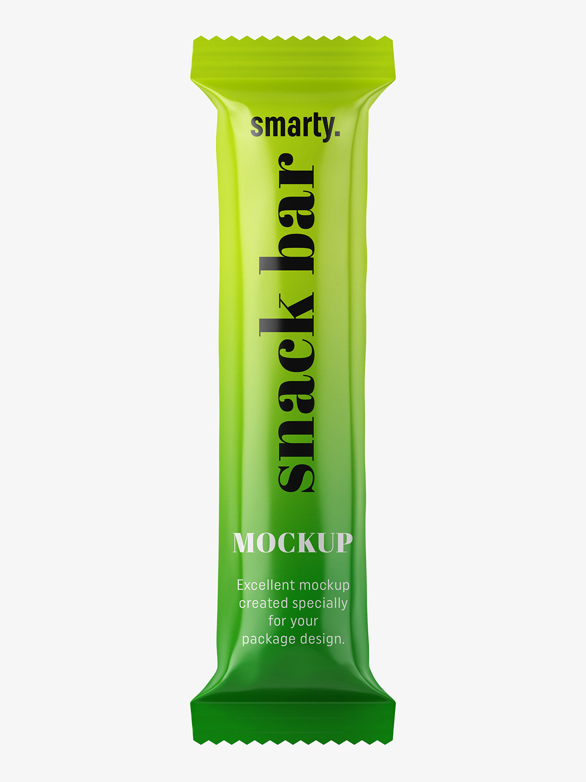 Simple snack bar packaging. Often used in food industry for candy bars, snacks or even healthy protein bars. Mockup is properly prepared so it is super easy to paste your own project and customize it.