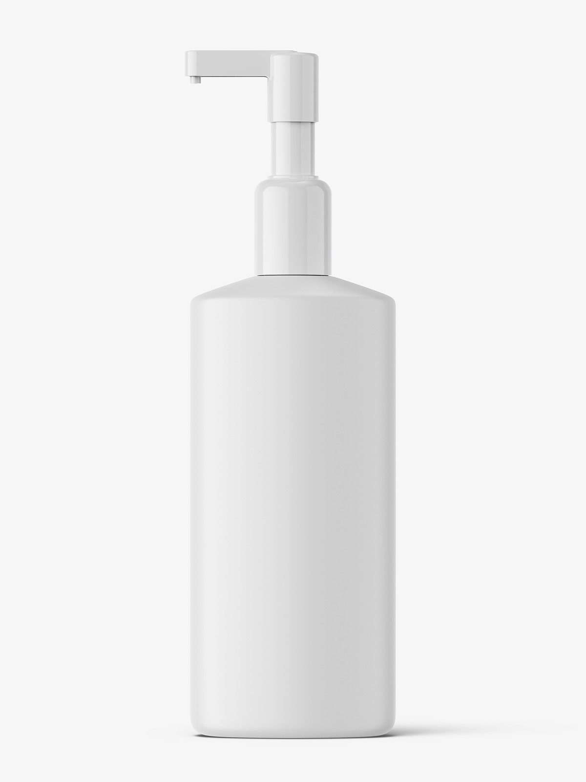 Matt cosmetic bottle with pump mockup. Such bottle type may be used in cosmetic, hair or even pharmacy industry. Prepared in high resolution.