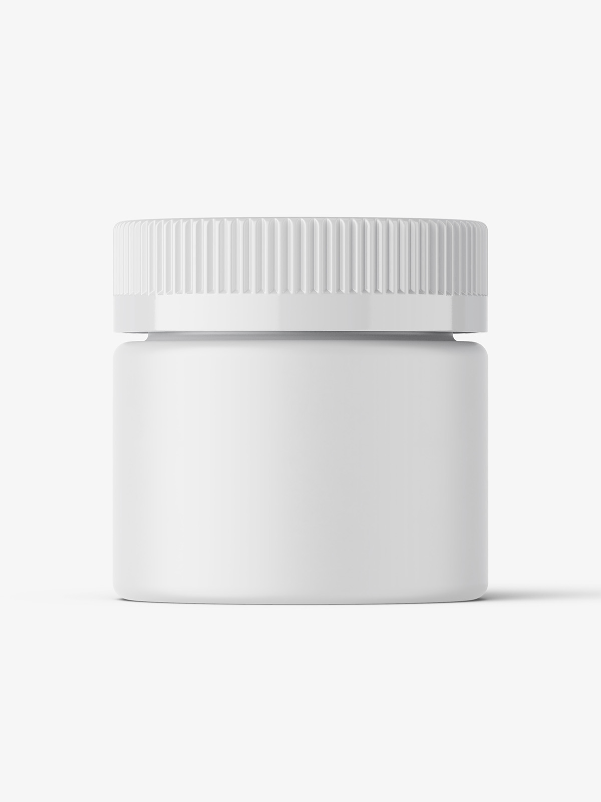 Small realistic glass jar mockup. Such jar may be used for presenting cosmetic or pharmaceutical bottles.