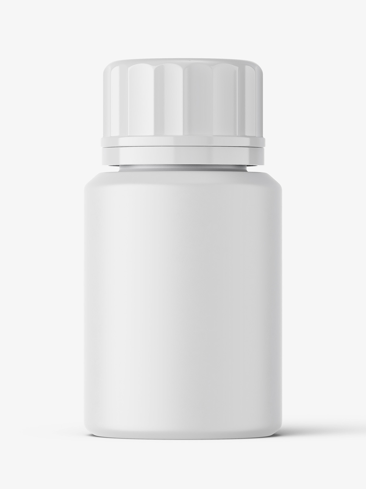Medical jar, used in the pharmaceutical industry as the package for tablets, pills, or capsules. The mockup was prepared so as to allow for adding any color to the cap and the jar itself.