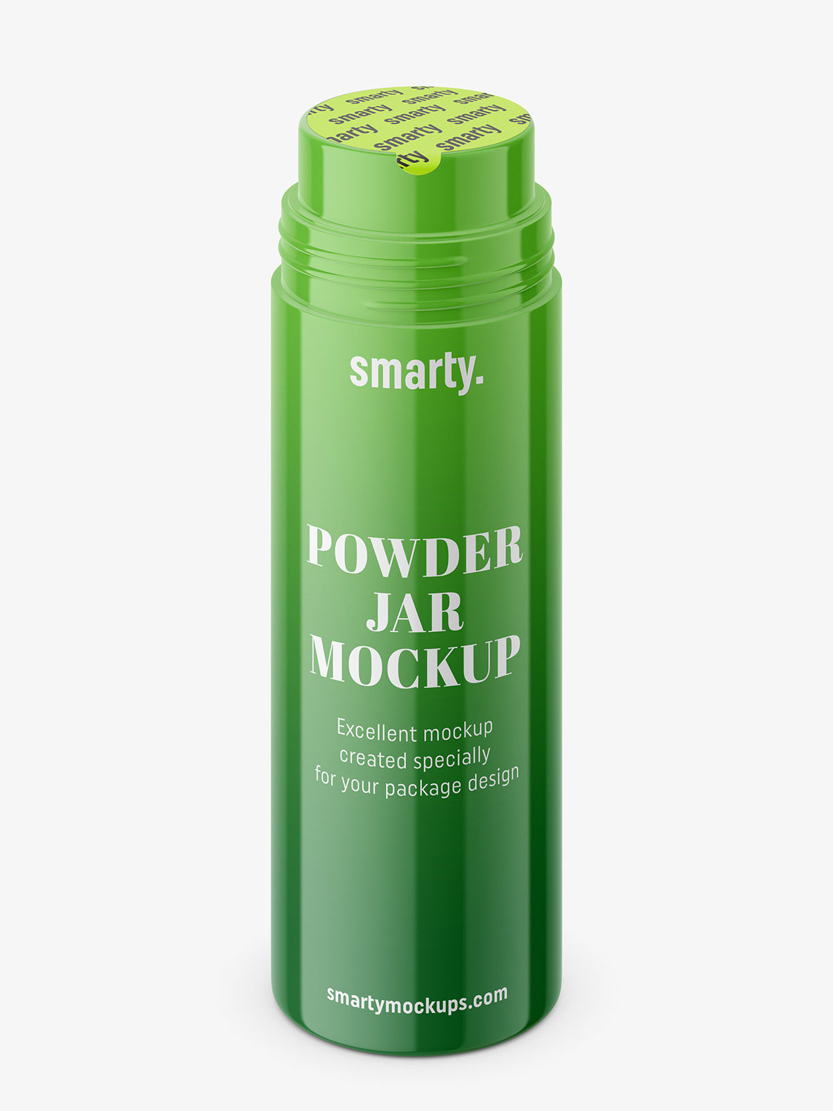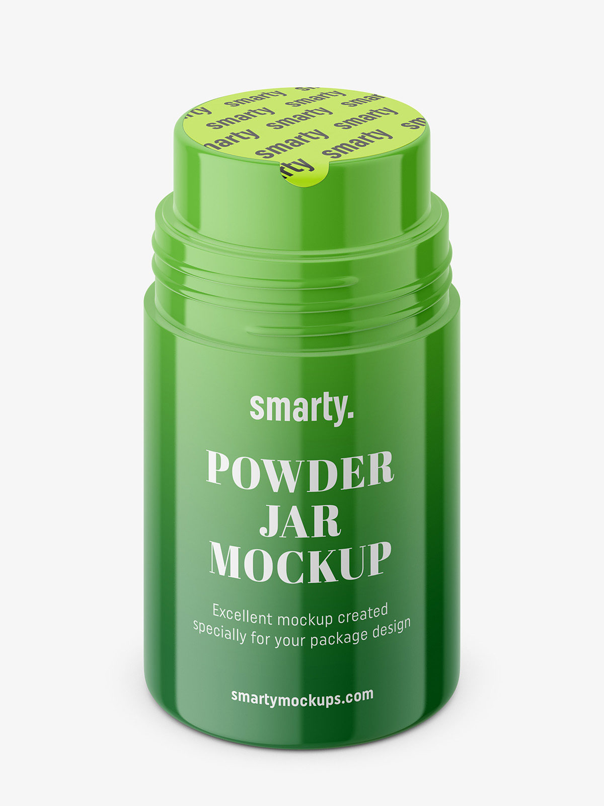 Universal powder jar mockup usually used in cosmetic industry. Prepared for ease of use, with organised and coloured layers.