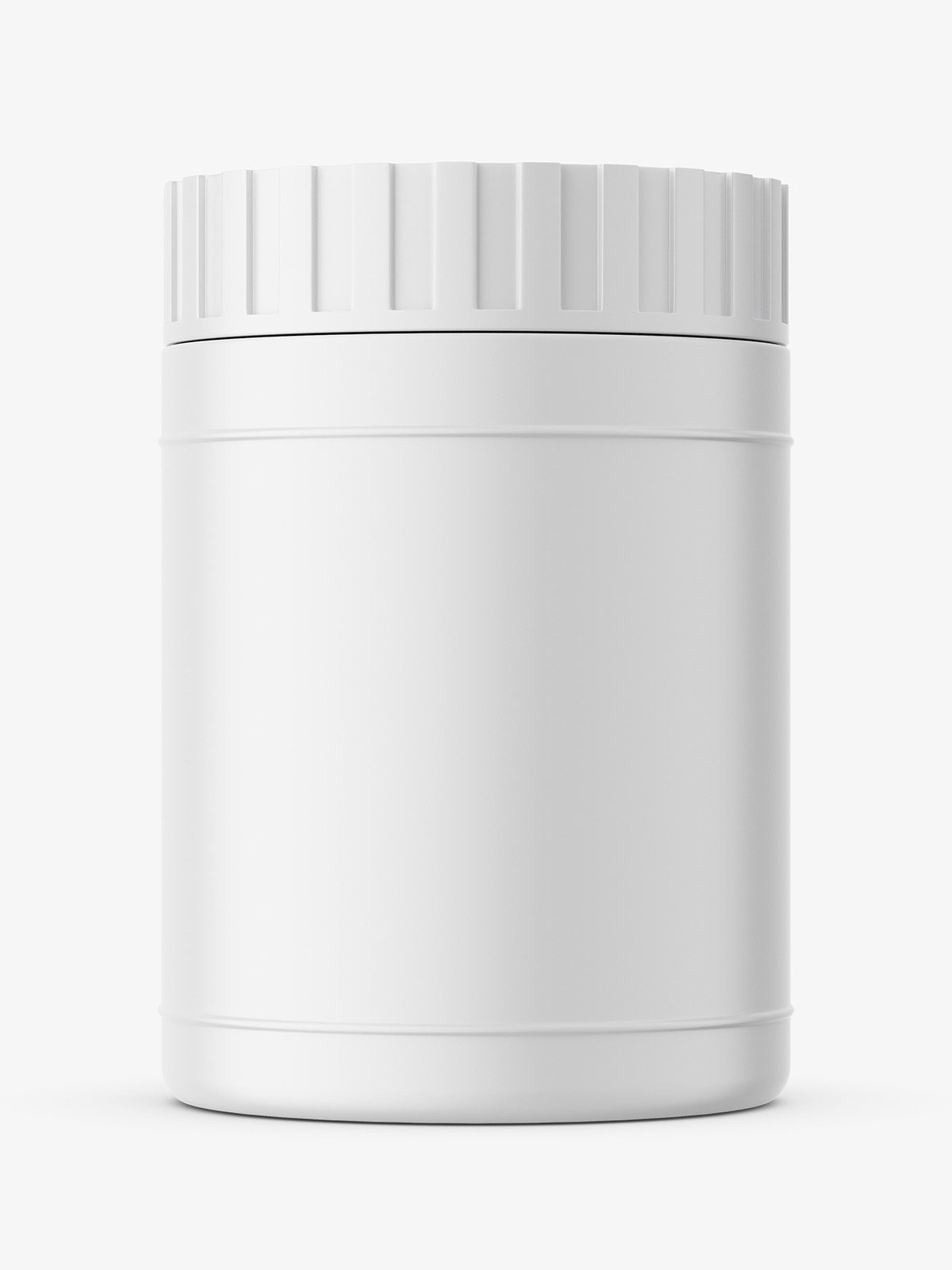 Medical jar, used in the pharmaceutical industry as the package for tablets, pills, or capsules. The mockup was prepared so as to allow for adding any color to the cap and the jar itself.