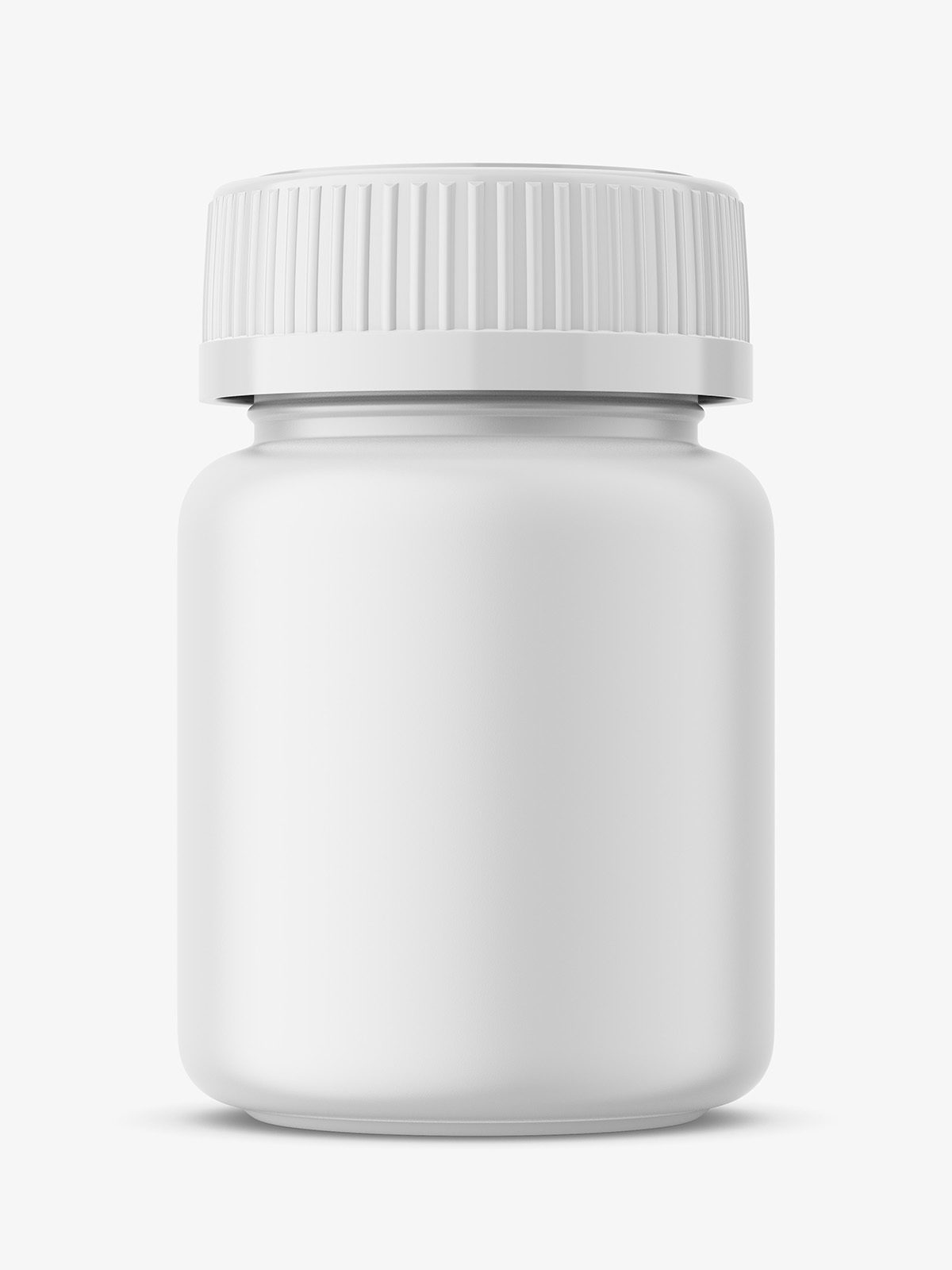 Medical jar, used in the pharmaceutical industry as the package for tablets, pills, or capsules. The mockup was prepared so as to allow for adding any color to the cap.