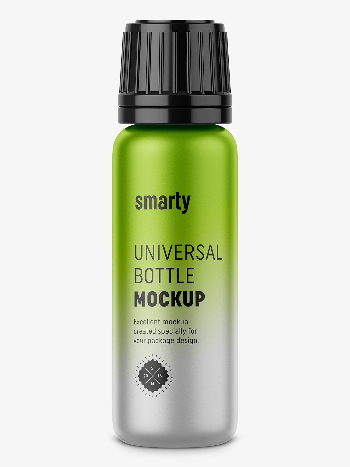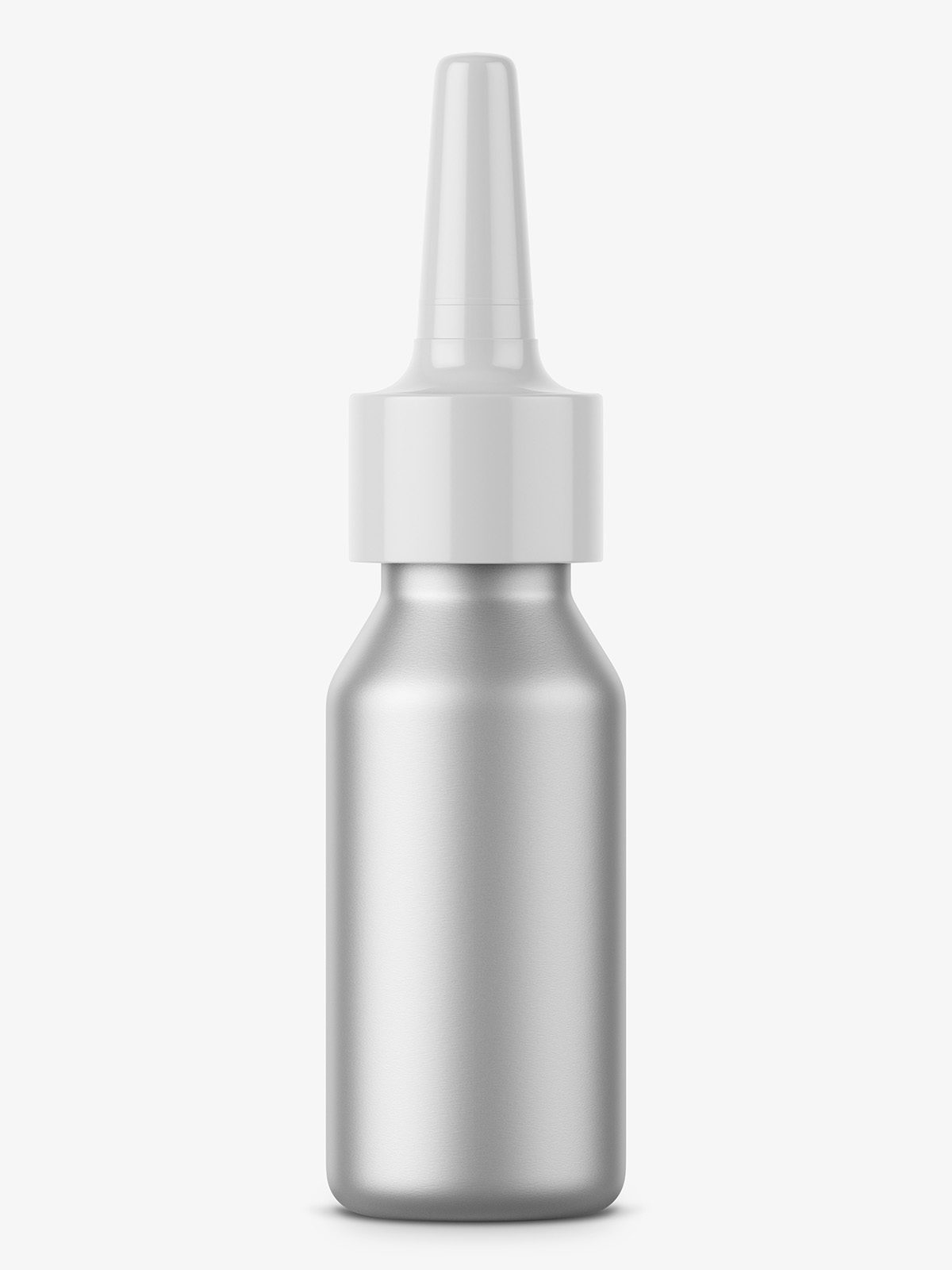 Nasal spray bottle used as packaging for medical and pharmacy liquids. Mockup prepared with an option for an easy change of the cap color.