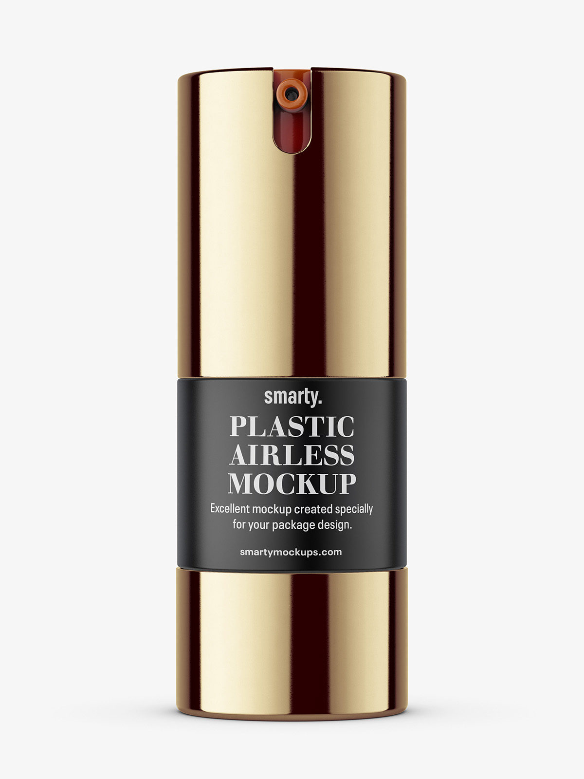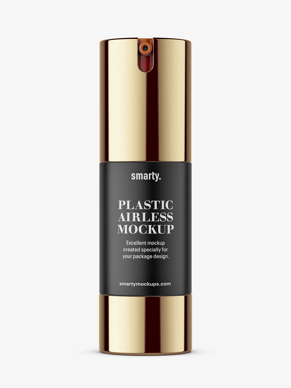 Metallic airless bottle mockup prepared with ability to paste project on glass. Top and bottom plastic color can be changed.