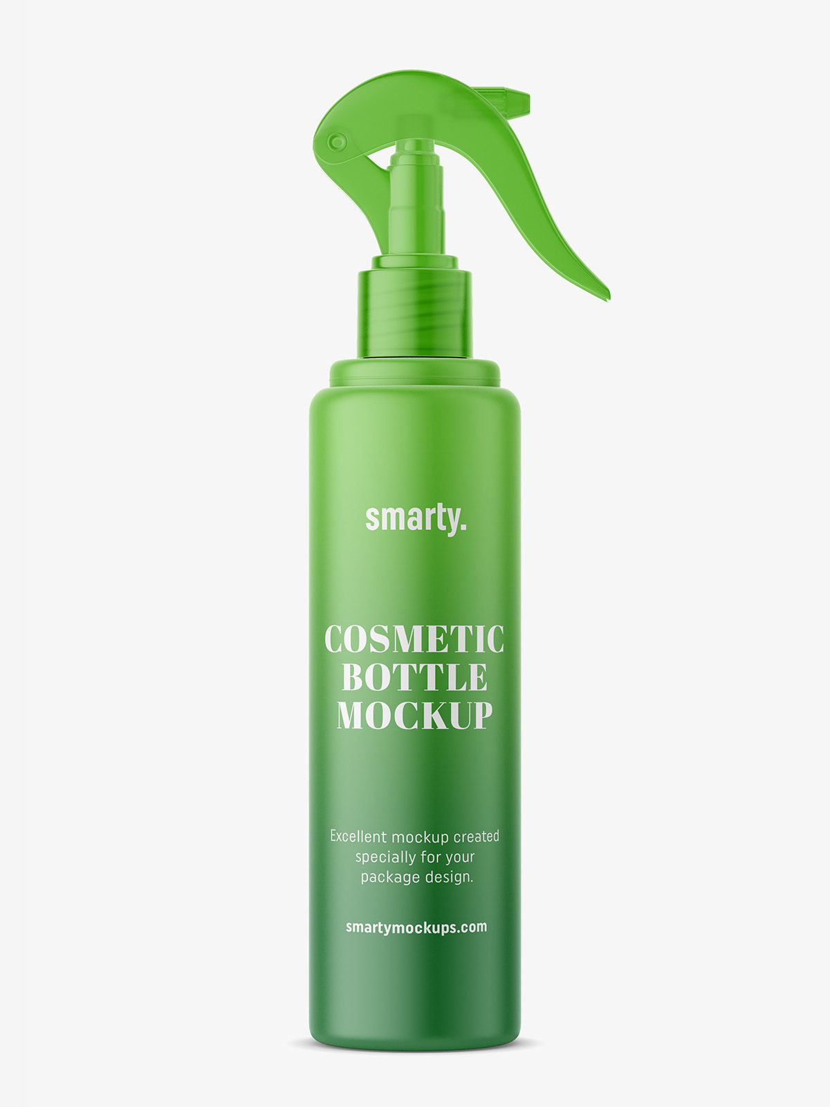 Metallic atomizer bottle mockup most often used in cosmetic industry. Prepared in high resolution with ability to change label project.