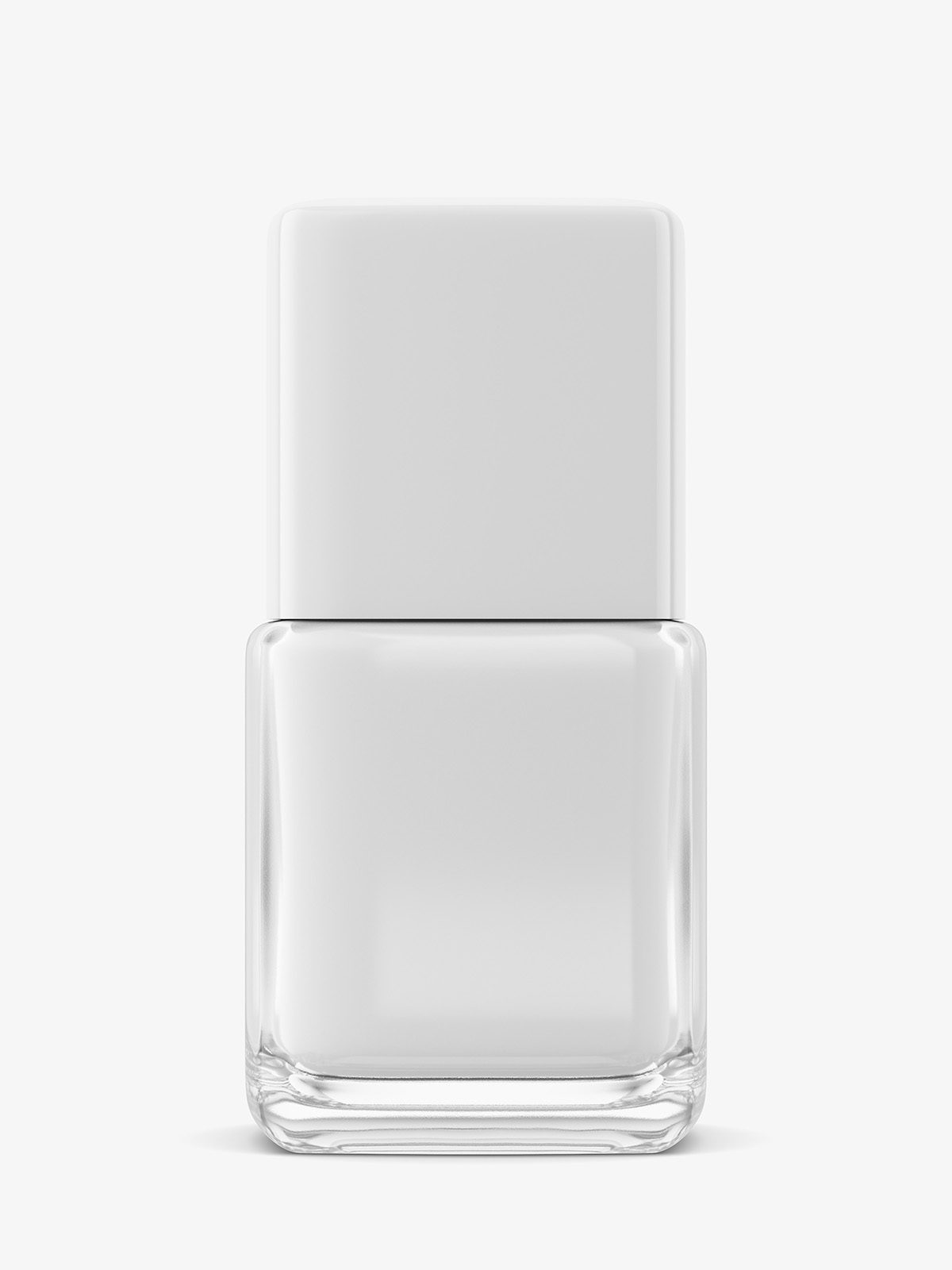Nail polish bottle filled with neutral color. Mockup prepared with an option for an easy change of the liquid and cap color.
