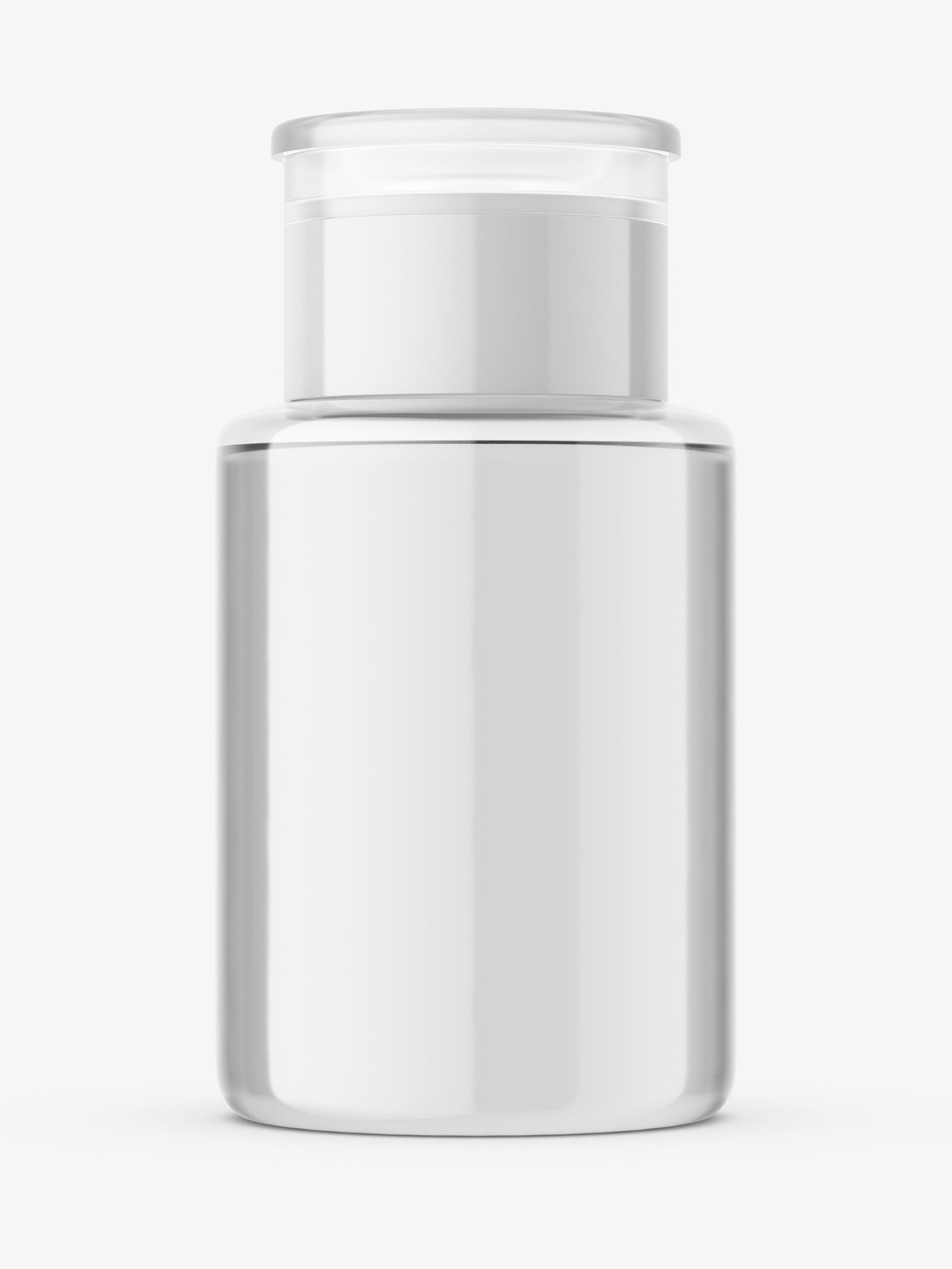Nail polish remover transparent bottle. Popular bottle most often used in beauty industry. Prepared to change color in every element.
