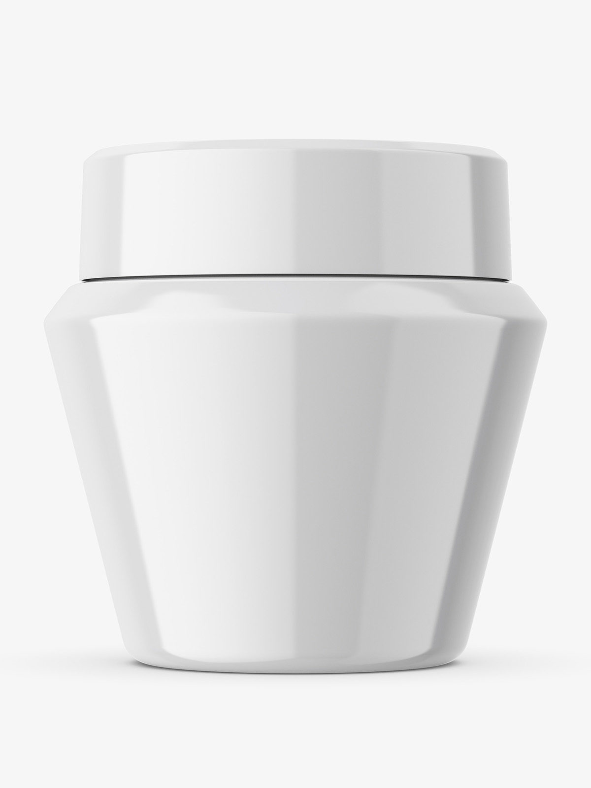 Narrowing glossy jar mockup. Perfect for any cosmetic or pharmacy packshots. Smart Object layer with label covers entire jar, but can be limited to any height you want.