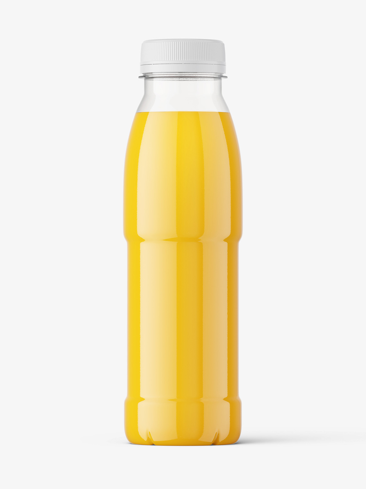 Plastic bottle used as a package for juices and other colorful drinks. Mockup prepared with an option for an easy change of the cap color and the project.