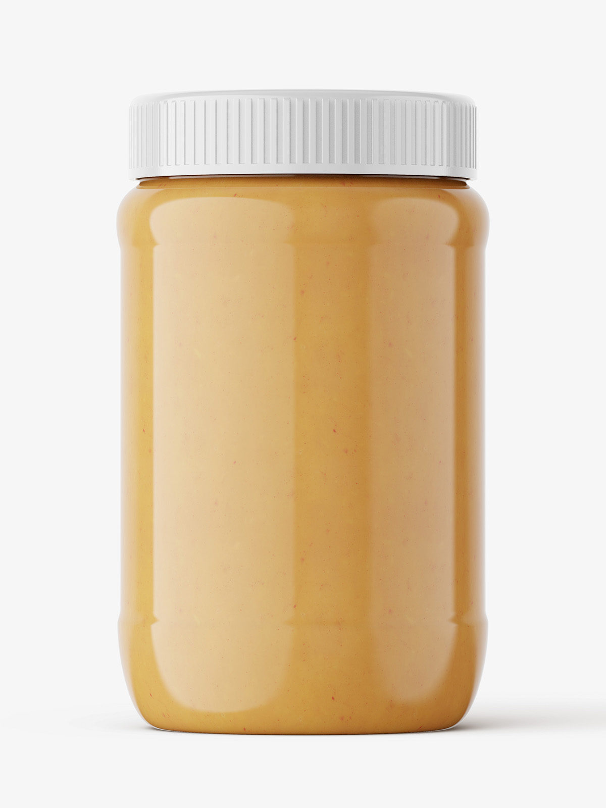 Peanut butter jar mockup. Prepared in high resolution with separated shadows and lights layer. Easy to edit and customize to your needs.