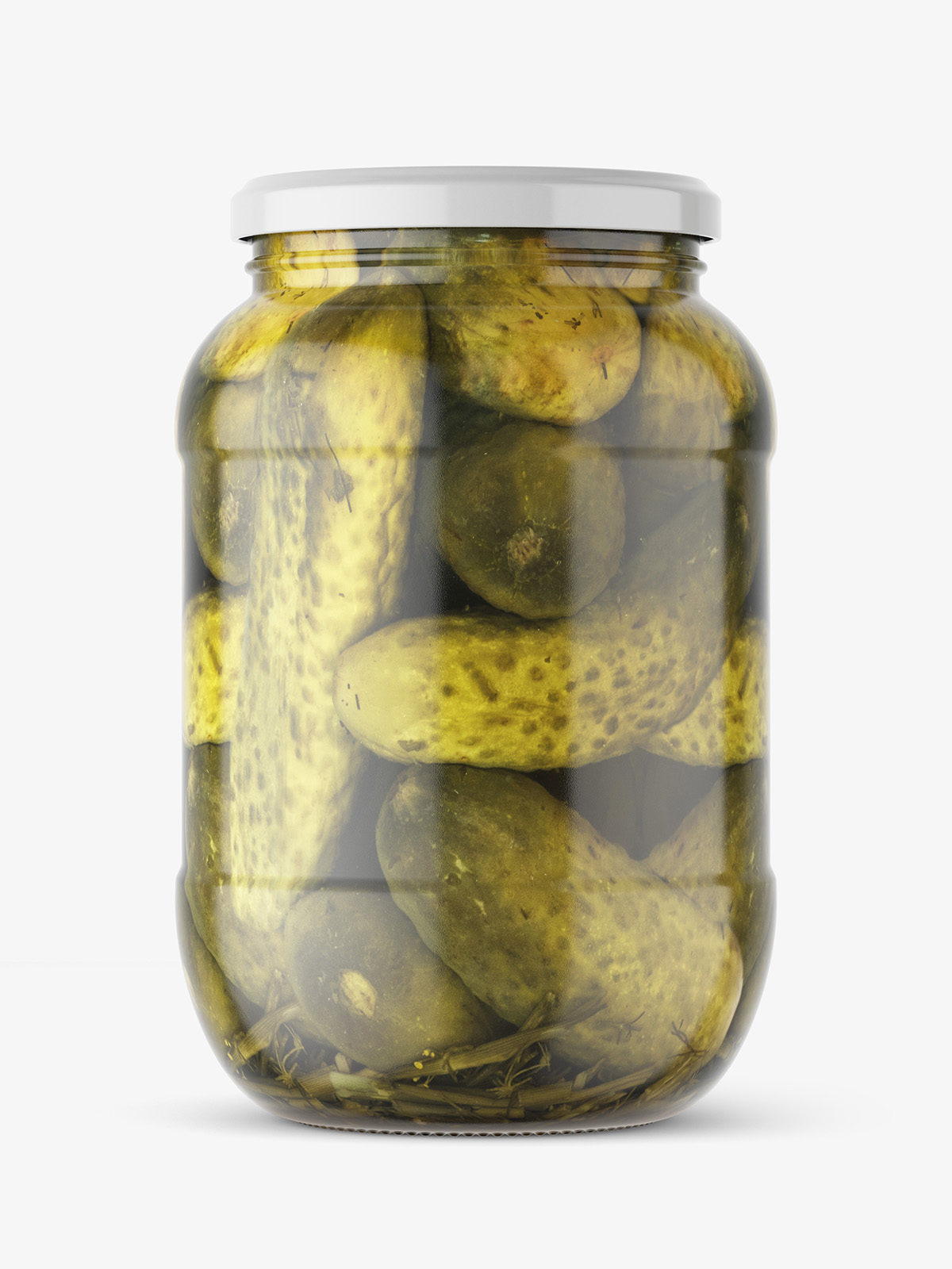 Realistic pickle jar mockup prepared in high resolution. Label cover entire jar and can be easily change.