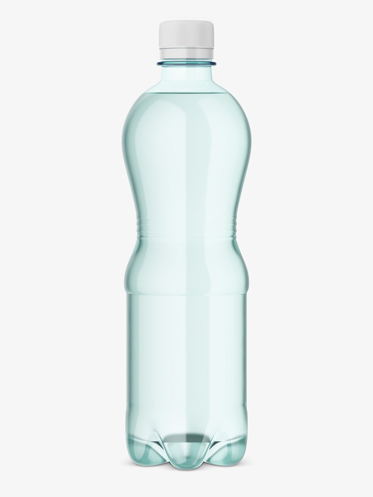Plastic bottle used as a package for mineral waters and other drinks. Mockup prepared with an option for an easy change of the cap color.