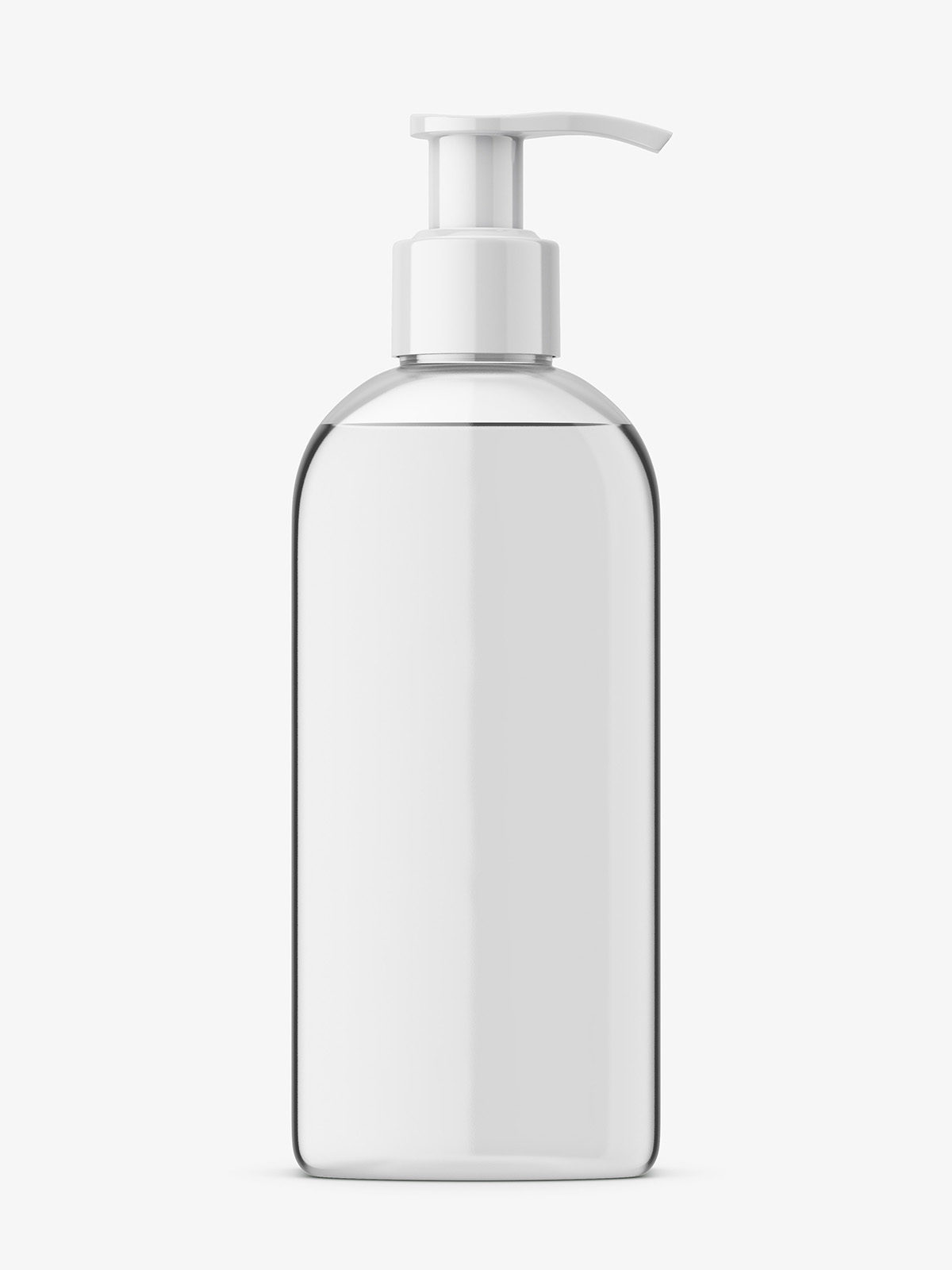 Rectangle bottle with pump mockup prepared with ability to paste your own project and set pump color. Shadows are on separate layer.