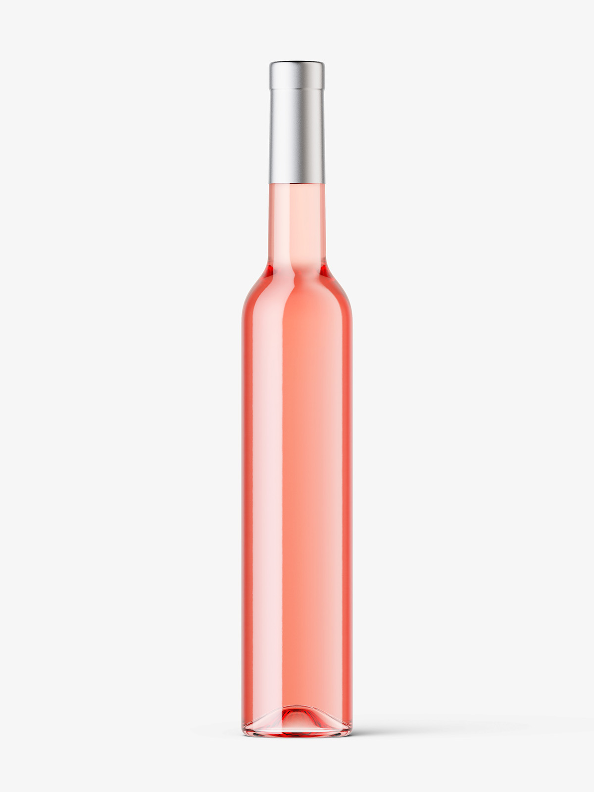 Rose wine bottle mockup prepared in high resolution. Hot stamping (with customizable color) coating is available for label. Two caps type: paper and metallic screw cap.