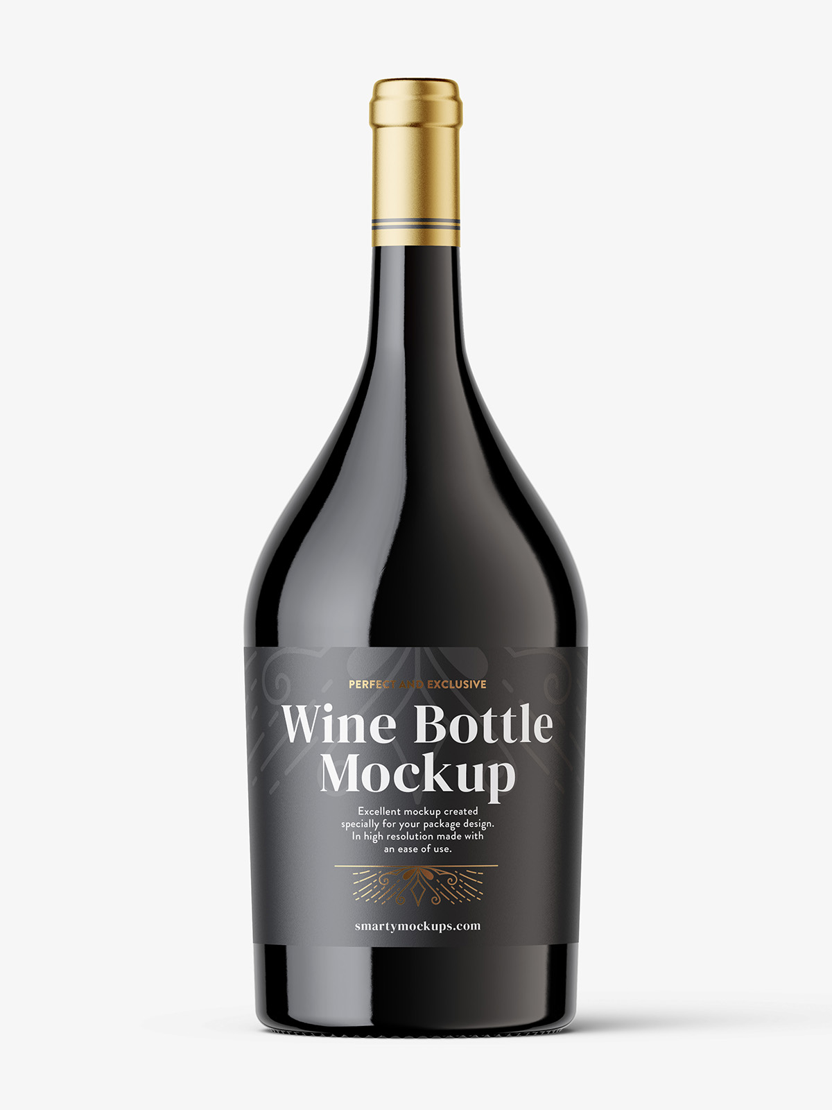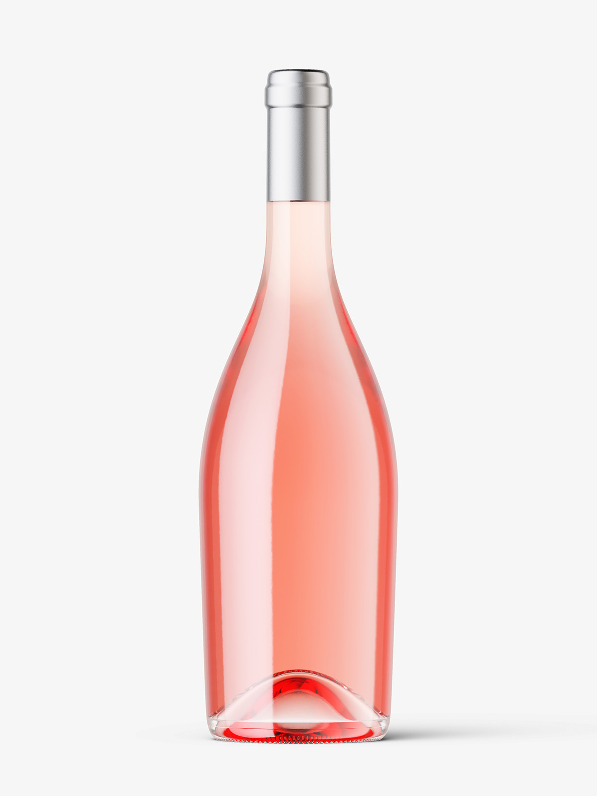 Rose wine bottle mockup prepared in high resolution. Hot stamping (with customizable color) coating is available for label. Two caps type: paper and metallic screw cap.