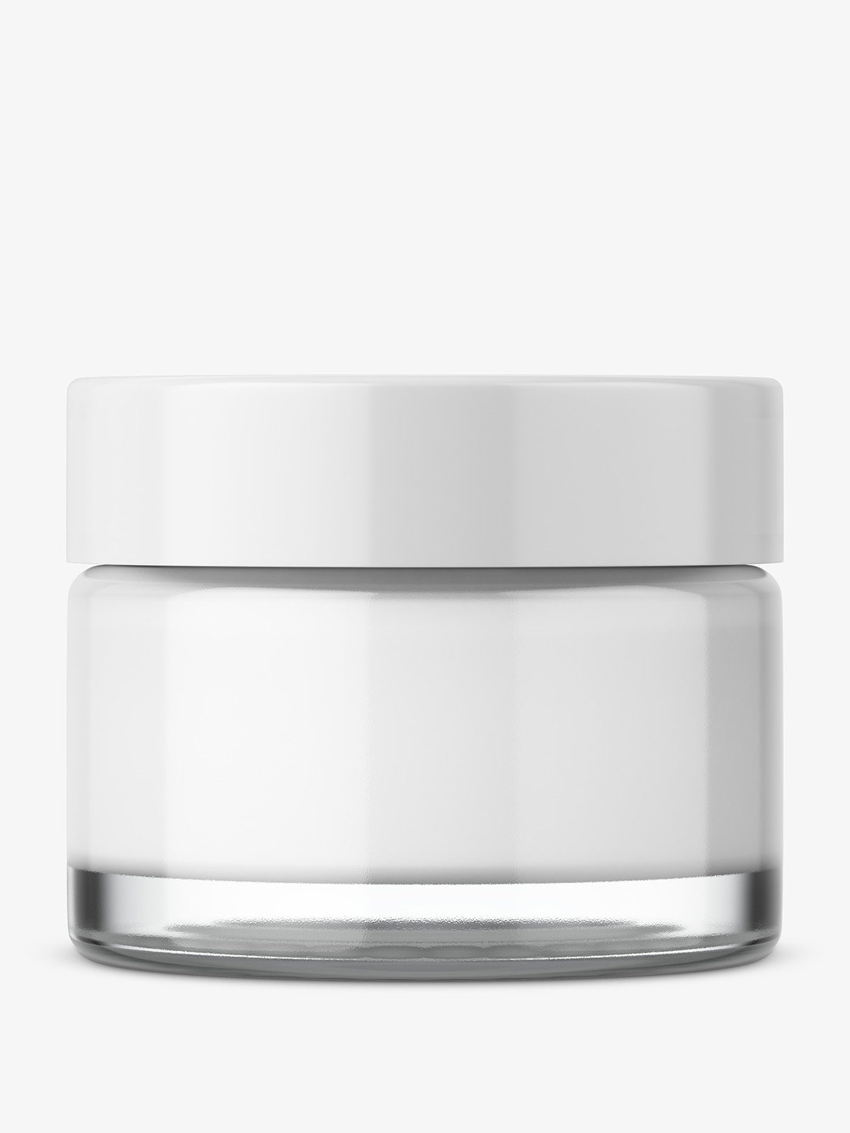 Round glass cosmetic jar for various creams, gels or other beauty products. Mockup is prepared with plastic and metallic cap (metal can be selectively use).